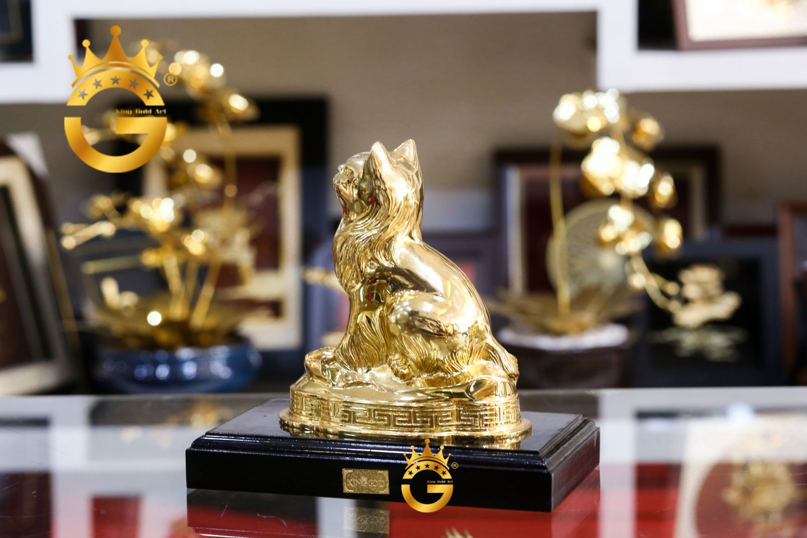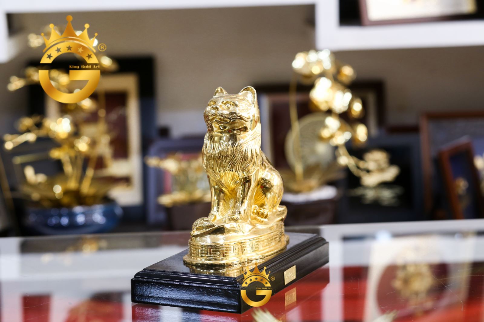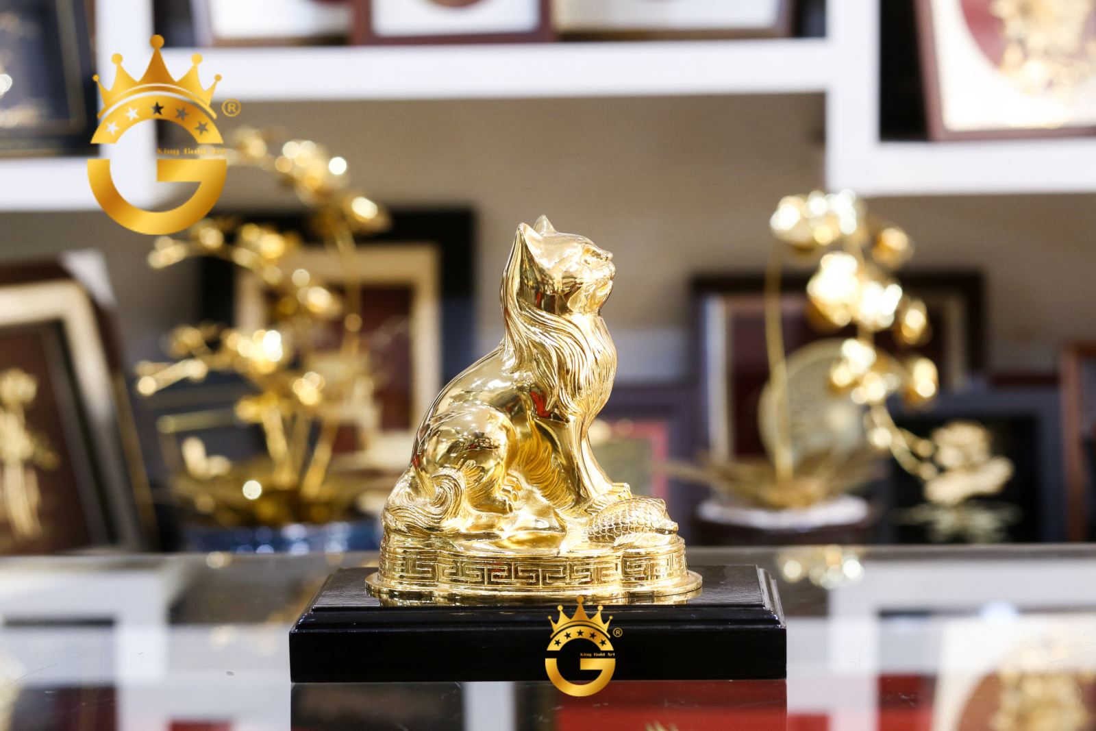Chi tiết hình ảnh tượng mèo mạ vàng 24k của Đồ đồng Việt Cần Thơ