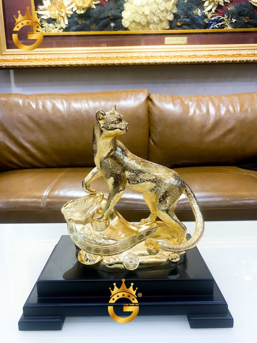 - Chưng mèo phong thủy có tác dụng chiêu nạp Tài Lộc nên màu vàng tượng trưng cho sự vàng son luôn được sử dụng nhiều nhất. Vì vậy, khi đặt linh thú mèo vừa mang ý nghĩa chiêu mộ linh khí, vận may và còn có giá trị về vật chất, cầu tài, cầu lộc, cầu may cho 1 năm mới phát tài phát lộc.