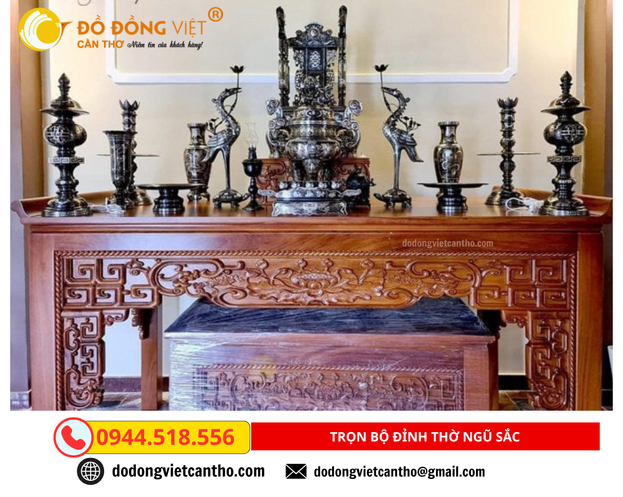 Bộ đỉnh đồng không chỉ là vật dụng trang trí mà còn mang ý nghĩa phong thủy, giúp không gian thờ cúng thêm trang trọng và ấm cúng.
