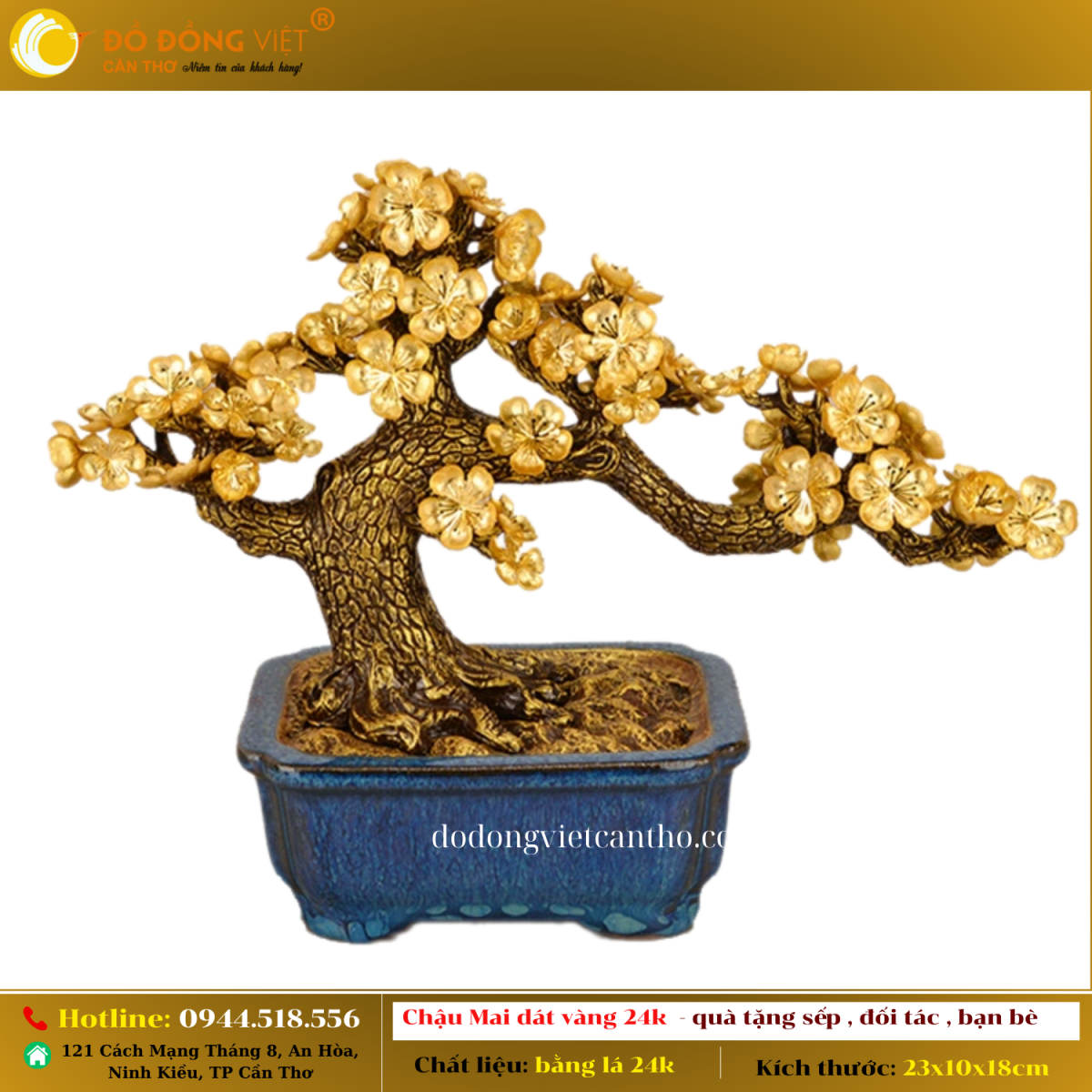 Chậu hoa mai vàng 24K là biểu tượng phong thủy mạnh mẽ, giúp gia chủ gặp nhiều may mắn, sự nghiệp hanh thông. Đây chính là món quà ý nghĩa mà ai cũng mong muốn sở hữu!