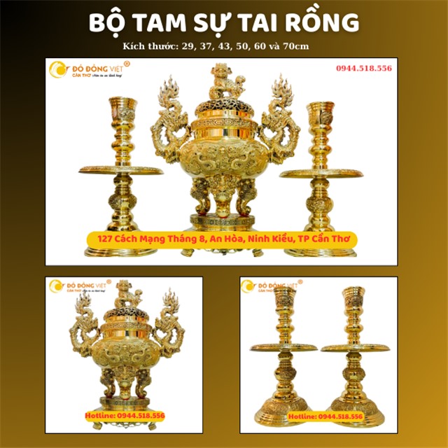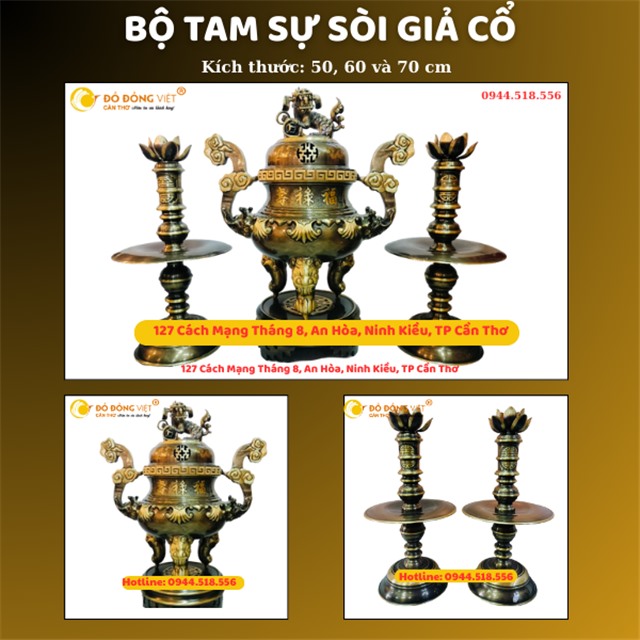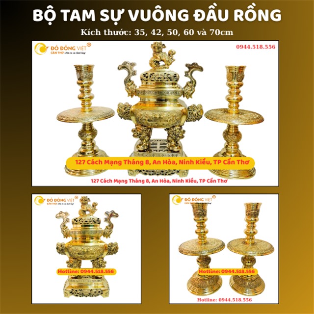 Chọn mua các bộ tam sự tại Đồ Đồng Việt Cần Thơ không chỉ là chọn mua sản phẩm mà còn là đặt trọn niềm tin vào giá trị tâm linh. Chúng tôi hiểu rằng mỗi vật phẩm thờ cúng đều mang ý nghĩa sâu sắc đối với mỗi gia đình. Vì vậy, chúng tôi luôn nỗ lực mang đến những sản phẩm chất lượng tốt nhất, được chế tác từ tâm, góp phần tạo nên không gian thờ cúng trang nghiêm, ấm cúng và mang lại bình an, may mắn cho gia chủ.