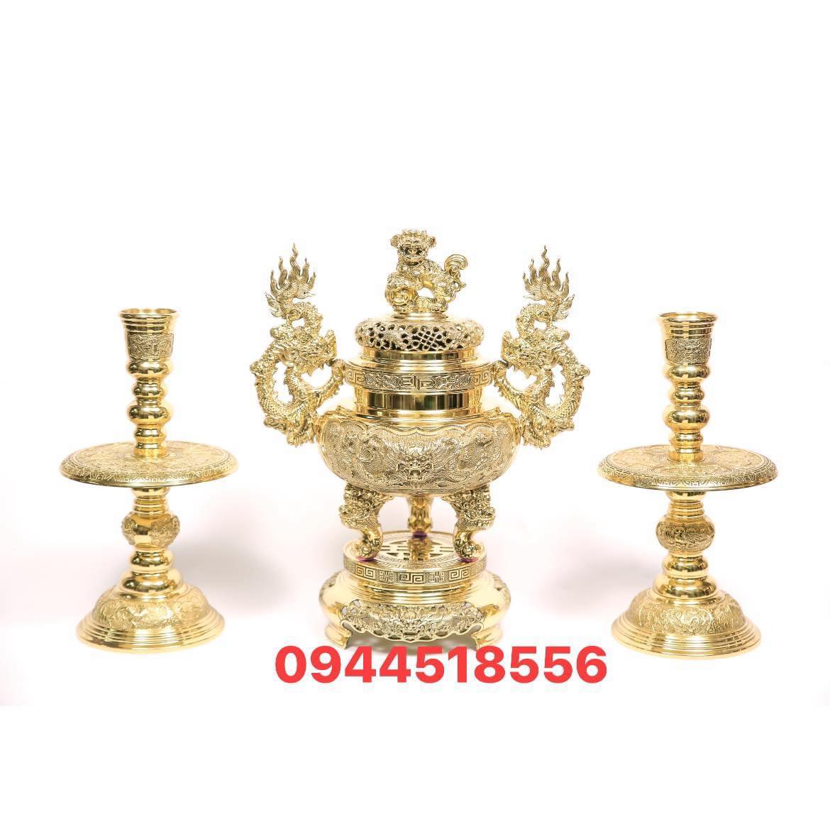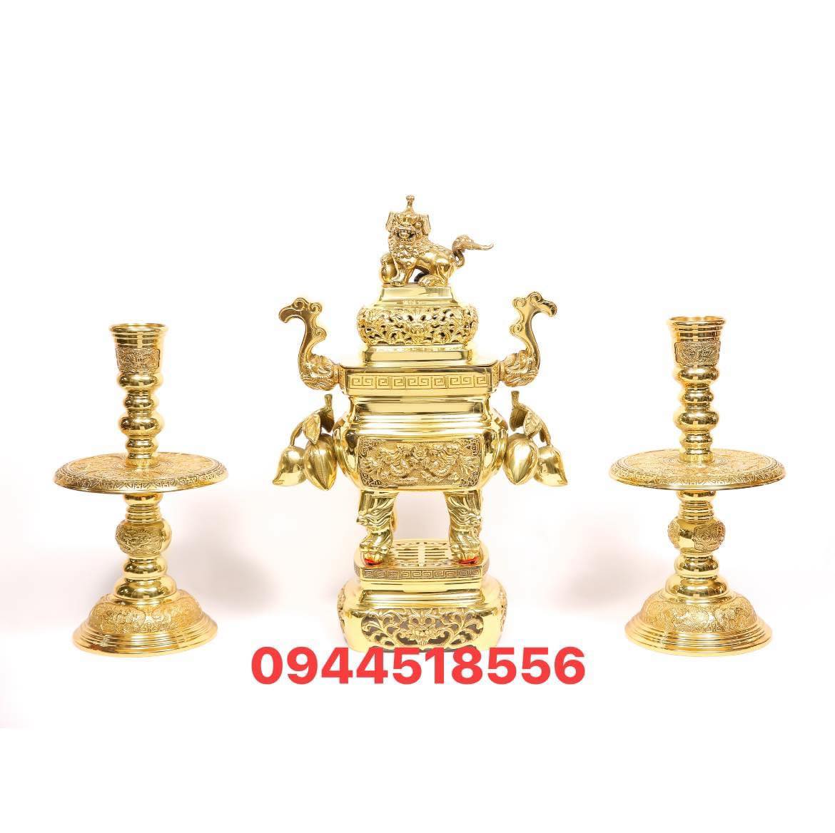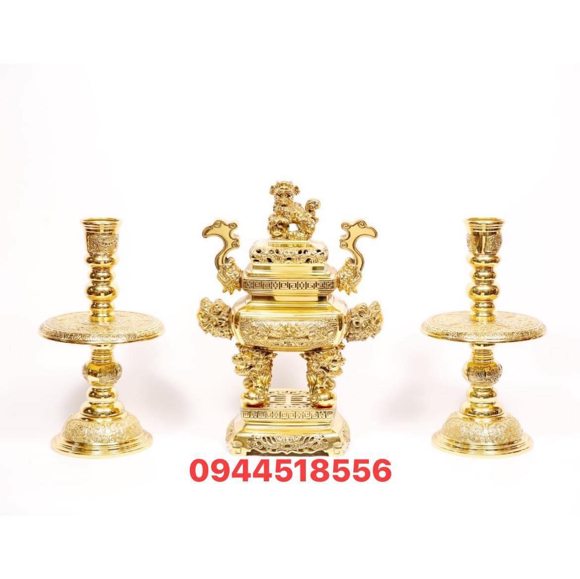 Bộ lư hương đồng Dapha cao 70 cm đúc liền đồng khối, bộ đỉnh và 2 chân nến 2 hạc đồng gọi là ngũ sự bày bàn thờ gia tiên, bàn thờ Phật, đền thờ cúng tâm linh.