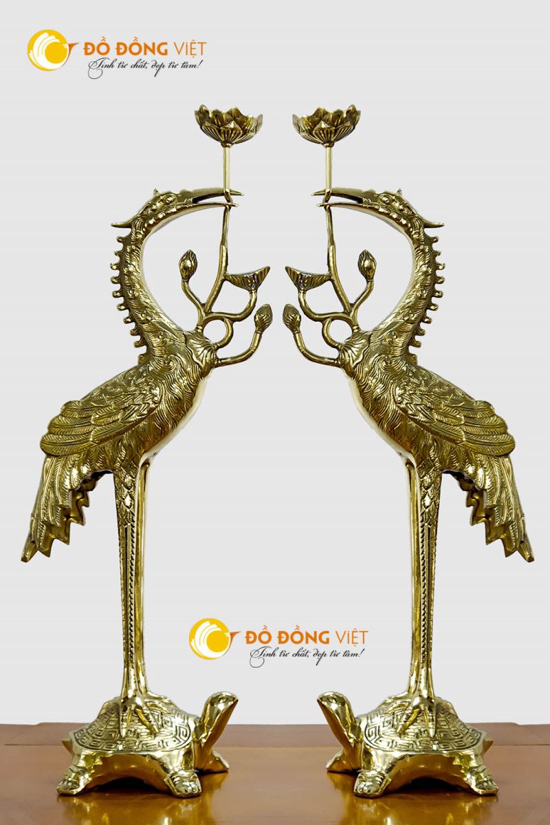 – Đôi hạc bằng đồng: hạc đứng trên lưng rùa đi theo đôi cũng có nhiều cỡ và mẫu khác nhau để 2 bên cửa Lư đỉnh. Hoặc những đôi hạc cỡ lớn được chầu cả ban thờ