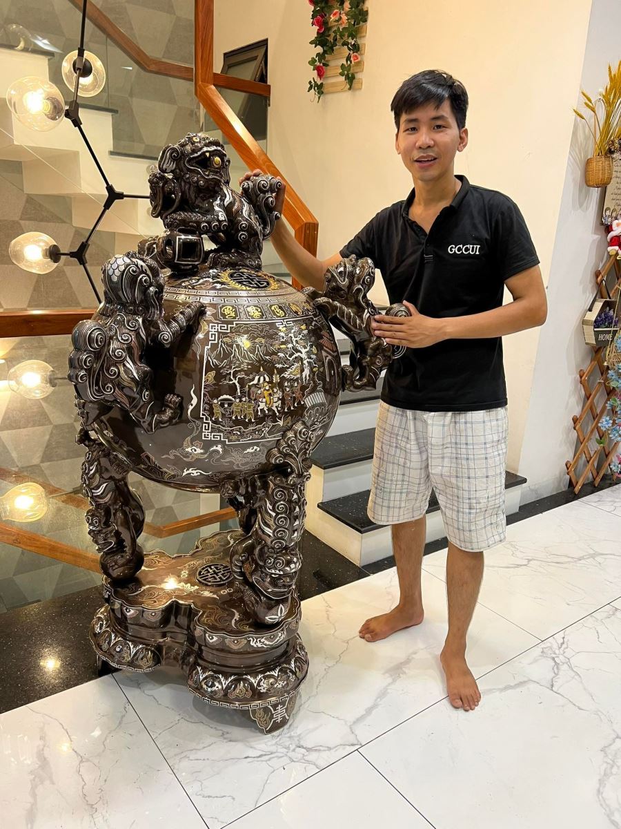 Đỉnh đồng thất lân vờn cầu khảm ngũ sắc đẹp tinh xảo tại Sóc Trăng