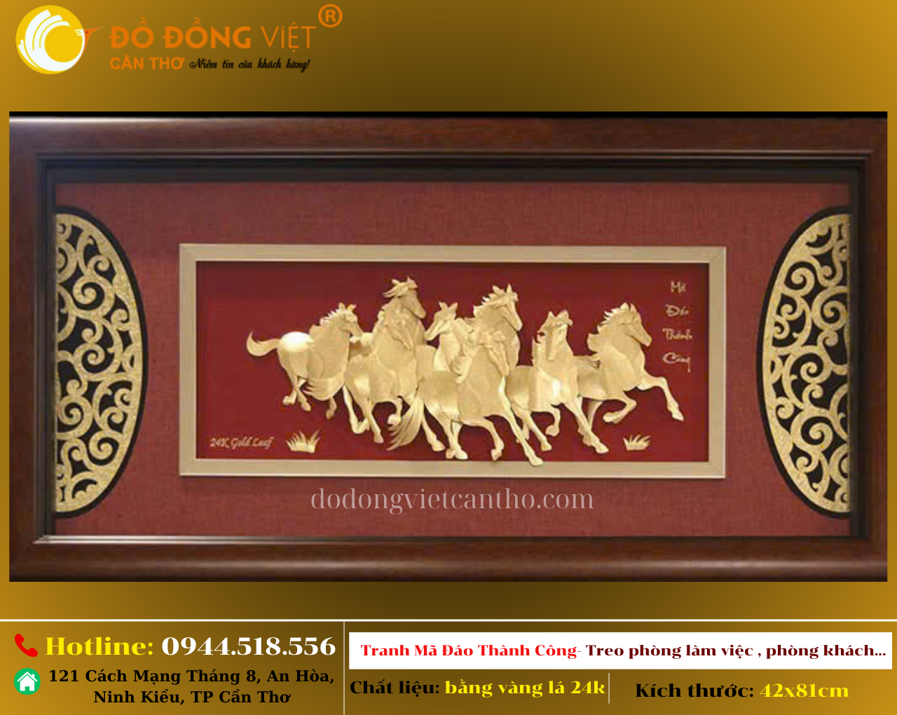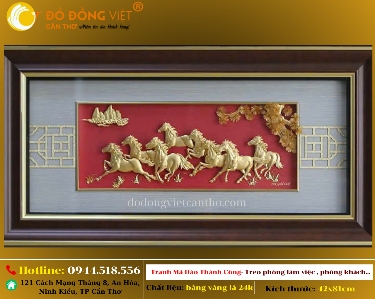 - Treo tranh Mã Đáo Thành Công vàng 24K giúp thu hút năng lượng tích cực, đem lại sự thuận lợi, phát triển bền vững.