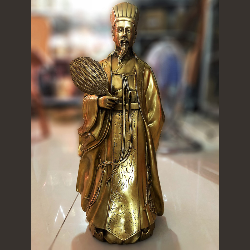 Gia Cát Lượng tự là Khổng Minh là vị chiến lược gia tài ba của nước Thục thời Tam Quốc. Ông đã có những đóng góp to lớn trong việc xây dựng đất nước và gìn giữ bờ cõi. Người được coi là biểu tượng của sự thông minh, trí tuệ và uyên bác. Do vậy, tượng thường được đặt ở phòng làm việc của các nhà lãnh đạo, doanh nhân. Trong phong thủy cát tường thì Khổng Minh là vị thần giúp trấn áp hung khí tốt, đẩy lùi mọi tà ma, ngoại đạo. Do vậy, đặt tượng trong phòng họp sẽ hỗ trợ cho chủ nhân rất nhiều.