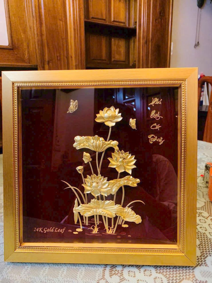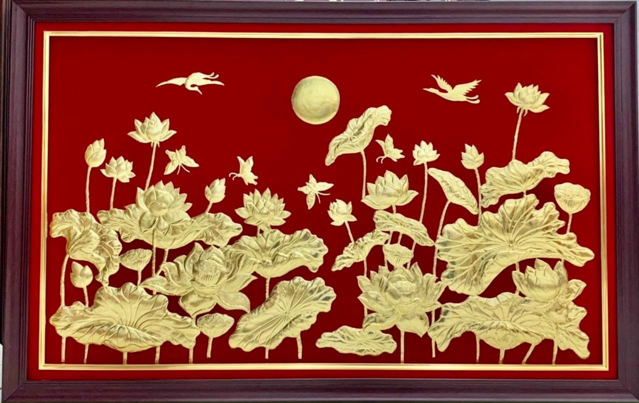 TRANH HOA SEN MẠ VÀNG - TÁC PHẨM NGHỆ THUẬT SANG TRỌNG