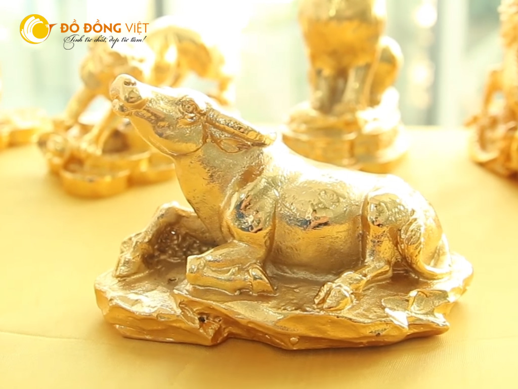 Tượng Trâu mạ vàng được Đồ đồng Việt chế tác với nhiều kích thước, kiểu dáng phong thủy khác nhau. Đây là quà tặng ý nghĩa để tặng Sếp, bạn bè, người thân trong các dịp lễ tết. Đặc biệt rất phù hợp với những người tuổi Sửu, hoặc hợp tuổi Sửu.
