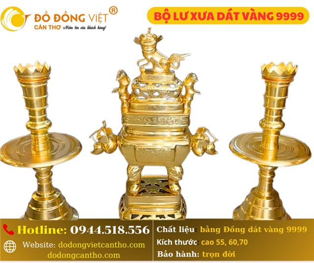 Bộ đỉnh đồng thờ cúng phú quý dát vàng