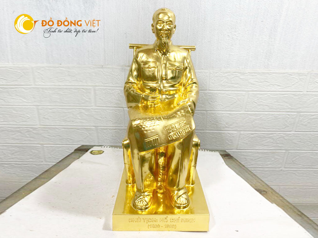 Tượng Bác Hồ ngồi đọc báo mạ vàng được cơ sở đúc đồng uy tín Đồ đồng Việt đúc thủ công, trực tiếp tại làng nghề truyền thống Đại Bái, Bắc Ninh. Tượng Bác Hồ ngồi đọc báo mạ vàng có thể dùng để trưng bày, làm quà tặng, quà lưu niệm hoặc thờ cúng.