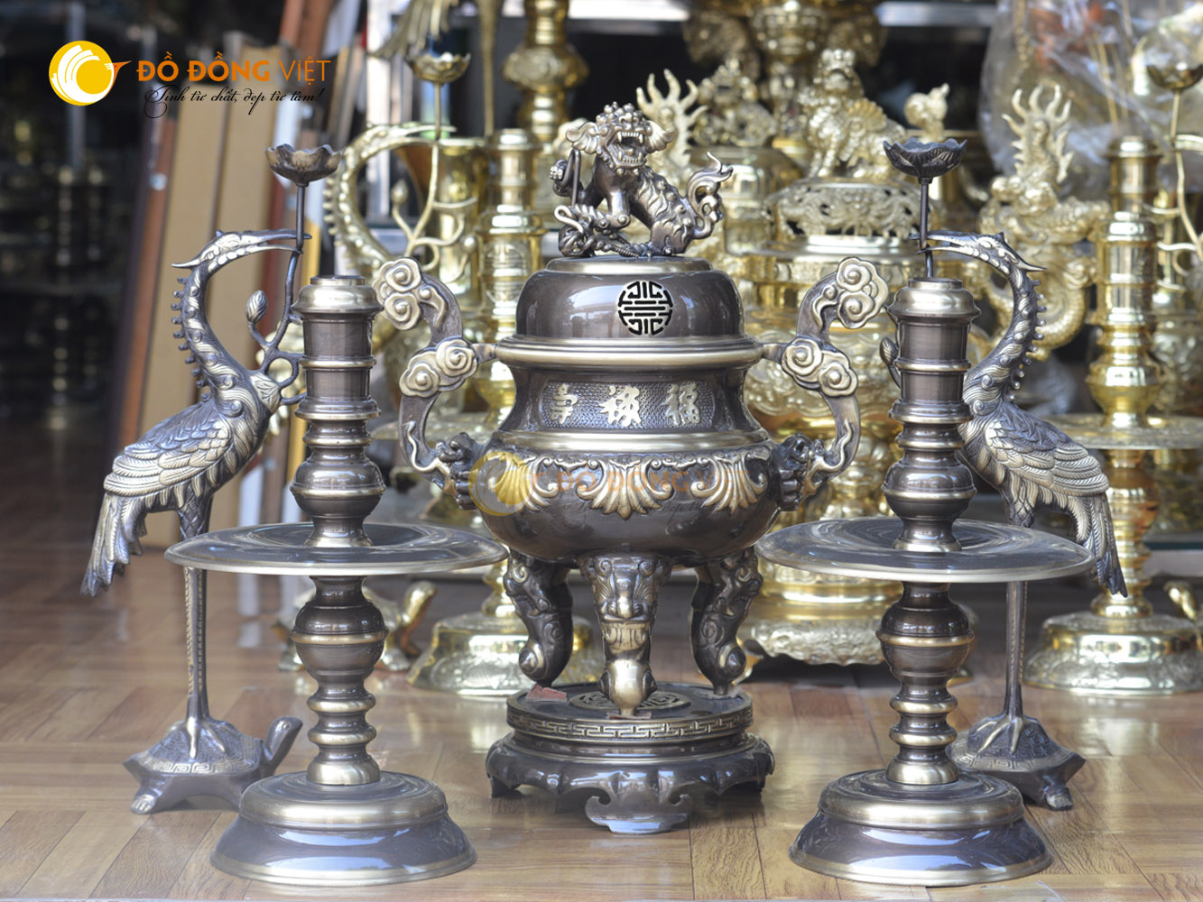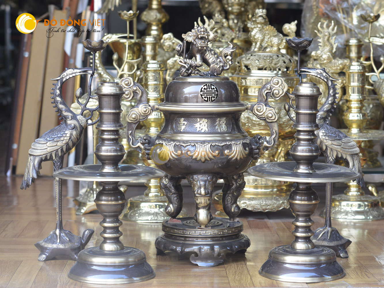 Đôi hạc đồng thờ cúng đi với bộ đỉnh đồng