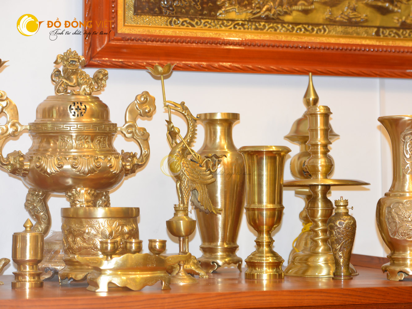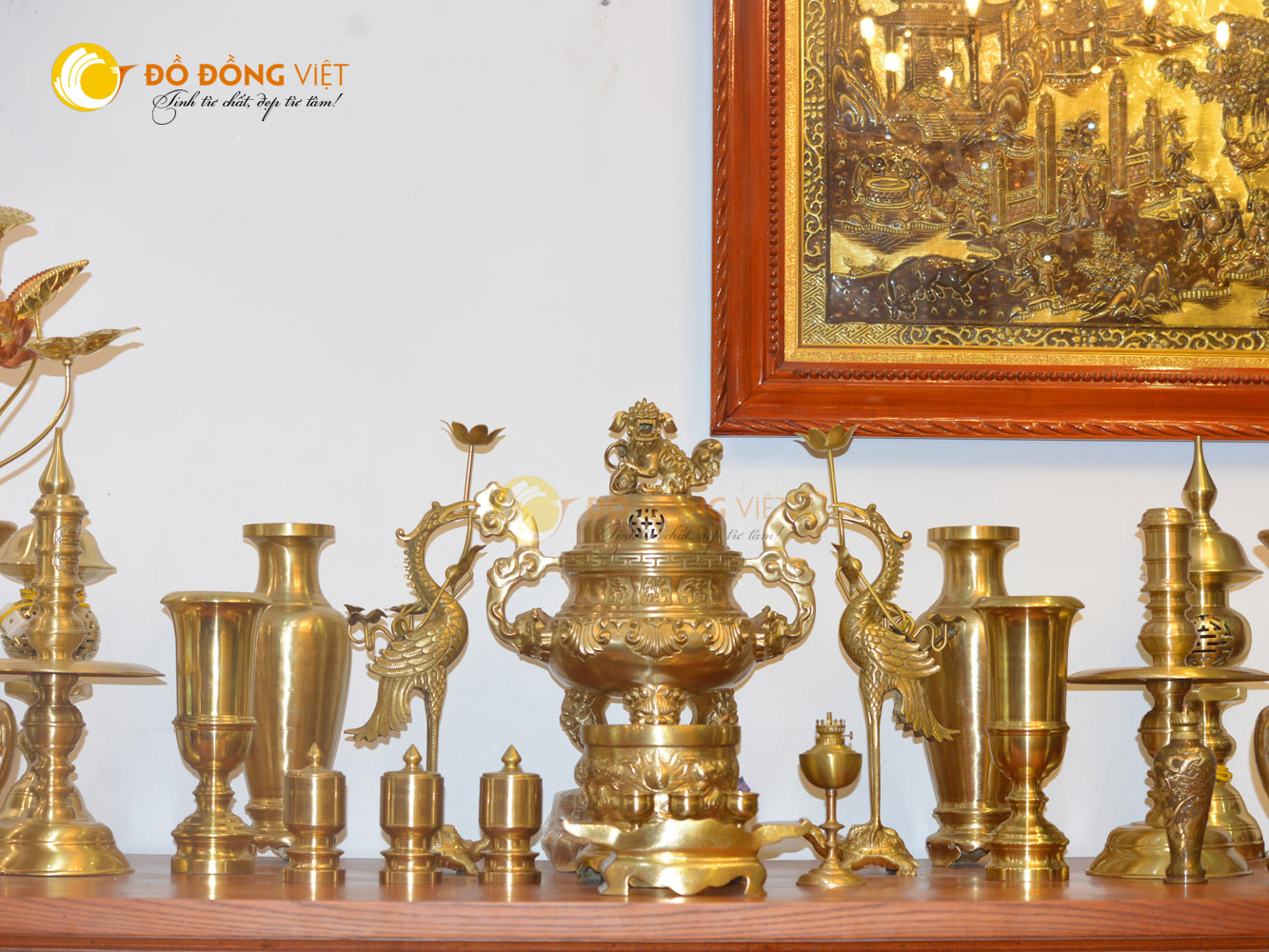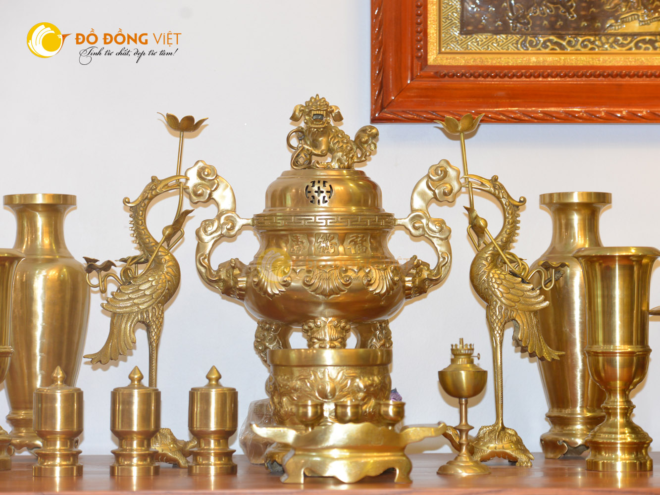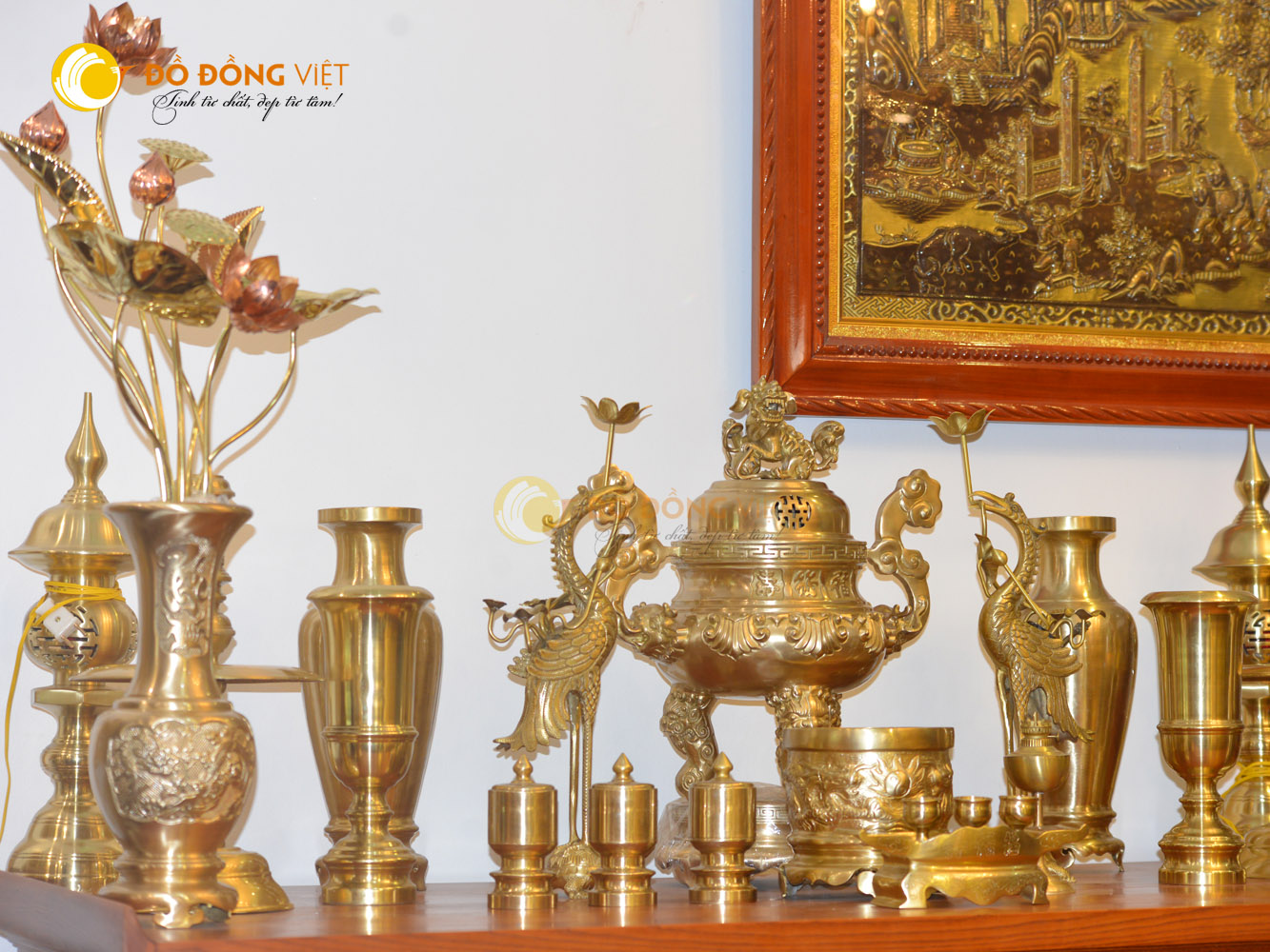 Bộ đỉnh đồng thờ cúng ngũ sự và phụ kiện đồ thờ đầy đủ