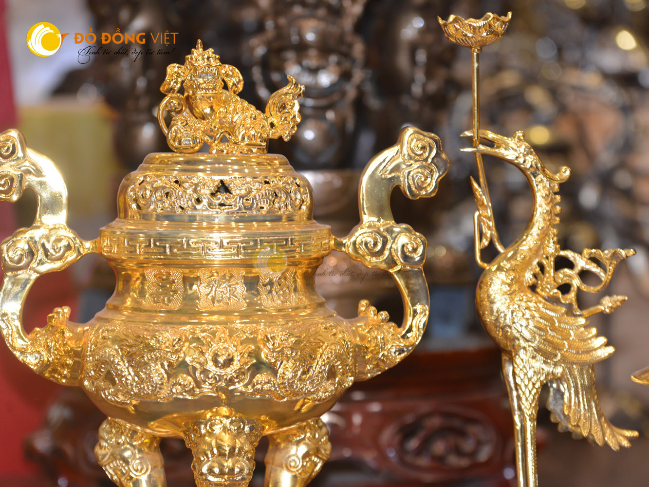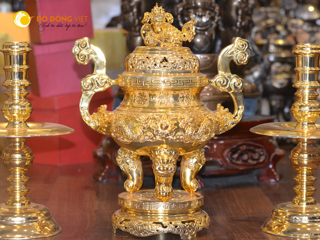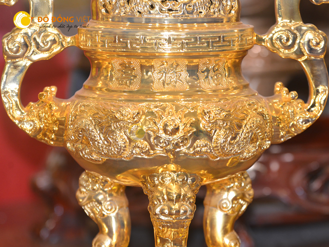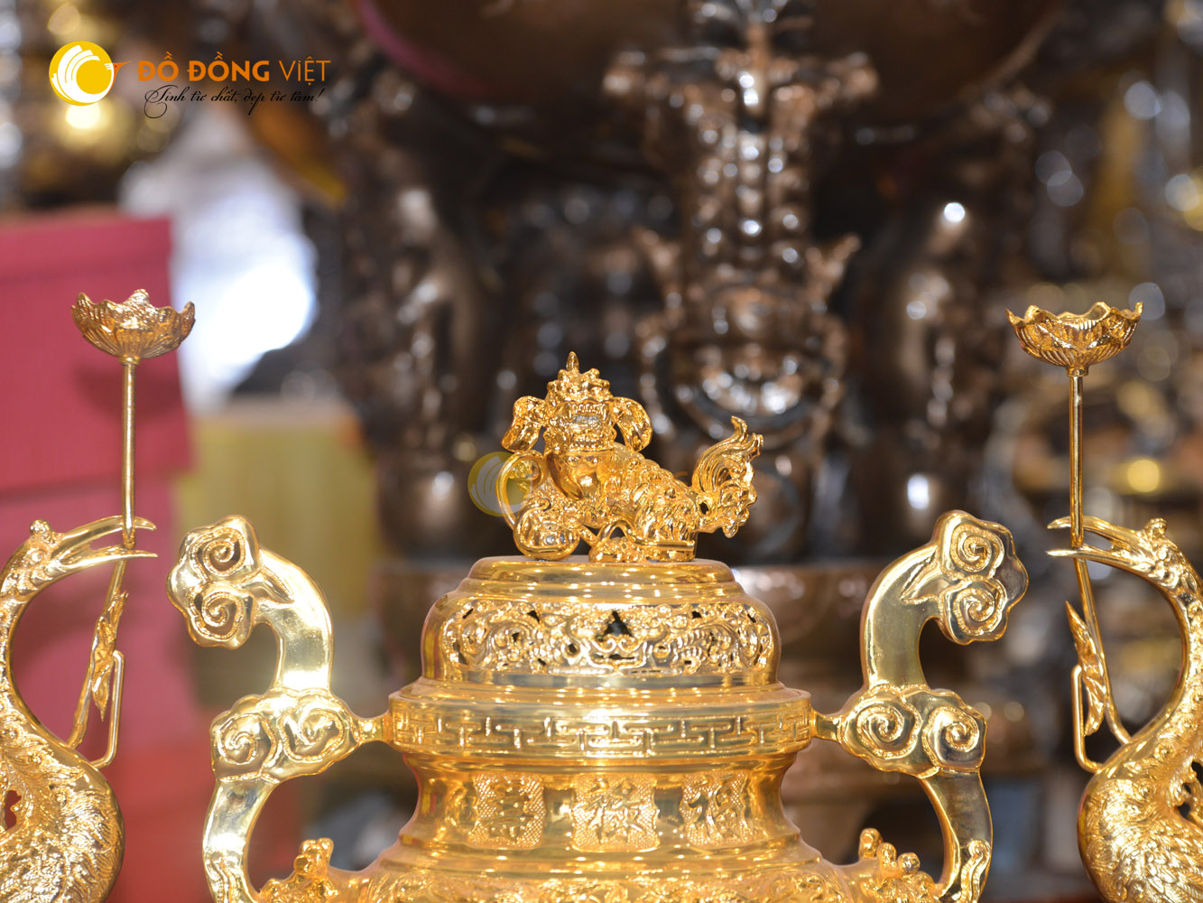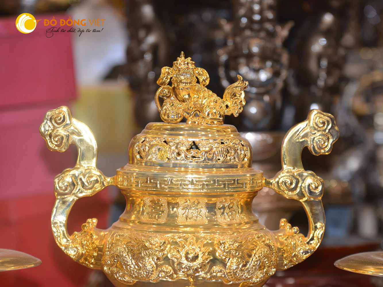 Bộ đỉnh đồng thờ cúng phú quý dát vàng 24k cao 60 cm