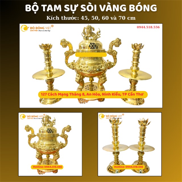 Chọn mua các bộ tam sự tại Đồ Đồng Việt Cần Thơ không chỉ là chọn mua sản phẩm mà còn là đặt trọn niềm tin vào giá trị tâm linh. Chúng tôi hiểu rằng mỗi vật phẩm thờ cúng đều mang ý nghĩa sâu sắc đối với mỗi gia đình. Vì vậy, chúng tôi luôn nỗ lực mang đến những sản phẩm chất lượng tốt nhất, được chế tác từ tâm, góp phần tạo nên không gian thờ cúng trang nghiêm, ấm cúng và mang lại bình an, may mắn cho gia chủ.