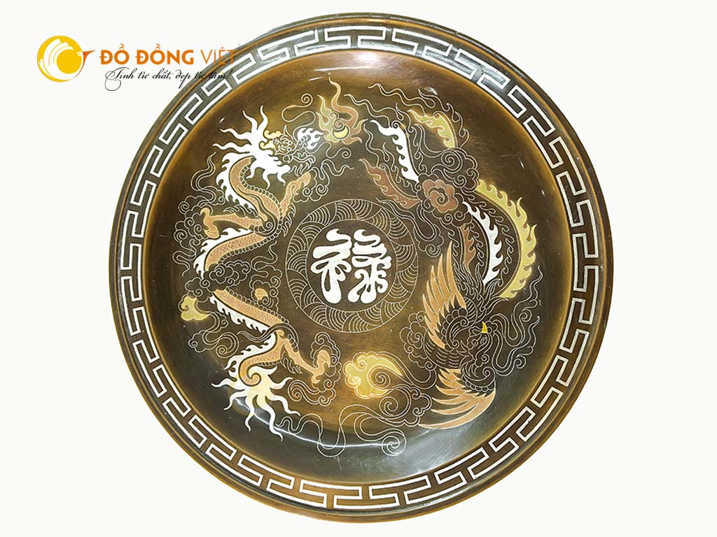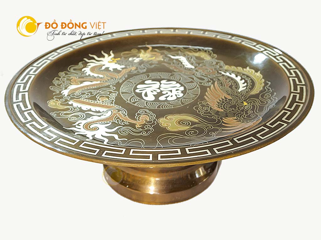 Chi tiết sản phẩm mâm bồng bằng đồng đỏ khảm ngũ sắc