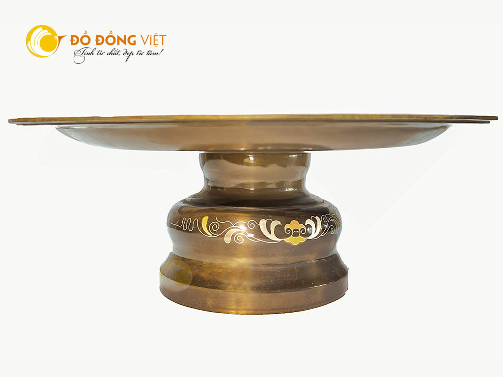 Đồ đồng thờ cúng, mâm bồng bằng đồng đỏ khảm ngũ sắc