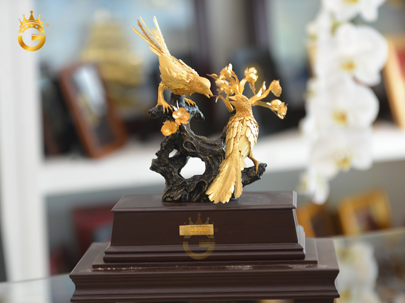 Tượng Đôi Chim Uyên Ương Mạ Vàng của Đồ Đồng Việt