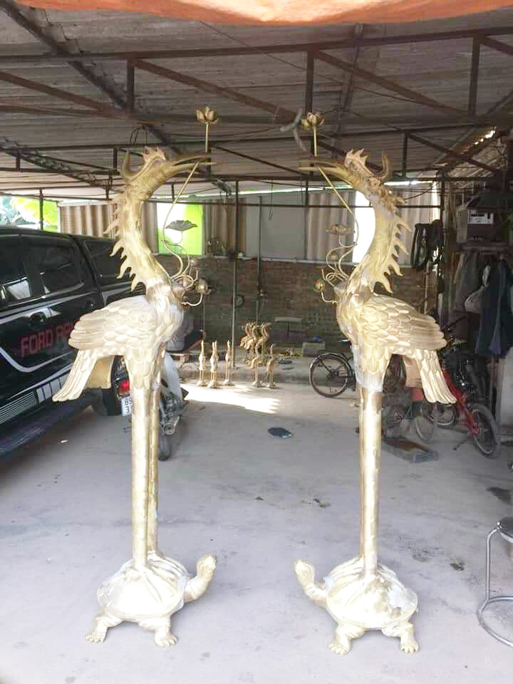 Đúc hạc thờ cỡ lớn bằng đồng tại Hậu Giang