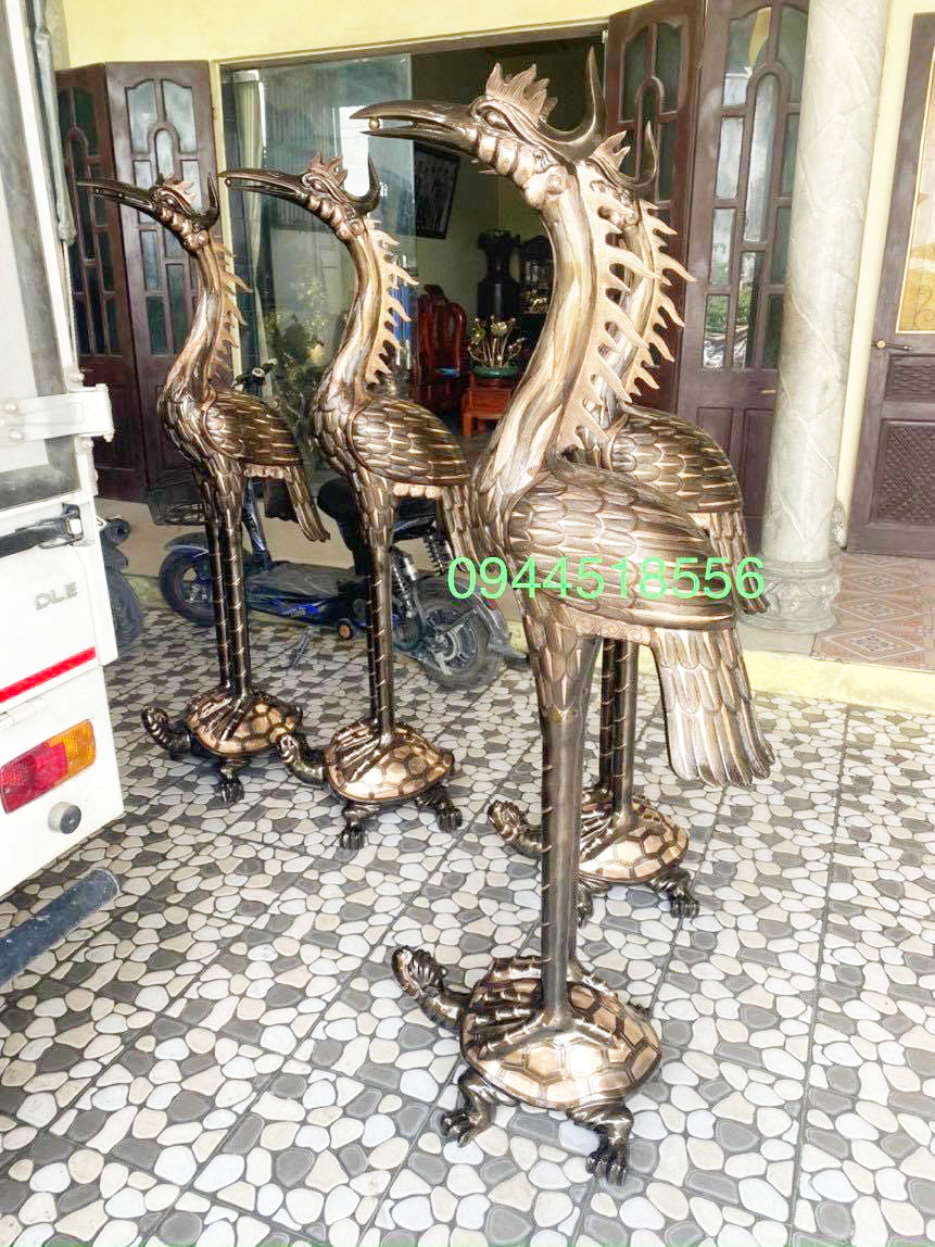 Các loại hạc đồng đều được chúng tôi đúc nguyên khối bằng đồng vàng hoặc đồng đỏ, mọi quy trình sản xuất đều được làm thủ công. Các kích thước phổ biến thường được dùng trong đền chùa là 1m27, 1m55, 1m76, 1m97, 2m,…Tùy vào không gian thờ cúng mà chúng ta lựa chọn kích thước sao cho hợp lý.