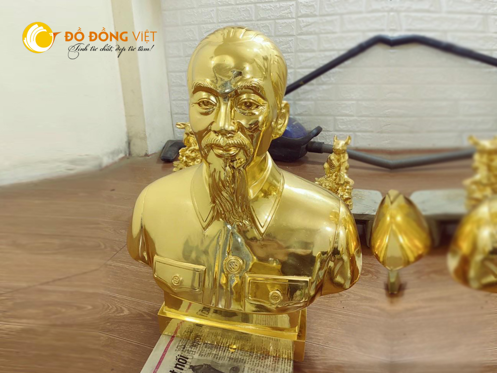 Tượng đồng Bác Hồ dát vàng đẹp tinh xảo từng chi tiết