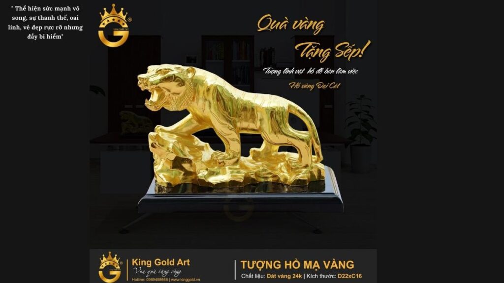 Tượng hổ dát vàng 24k thích hợp sử dụng làm quà tặng cho người thân, lãnh đạo, đối tác hay được sử dụng trưng bày trong gia đình.