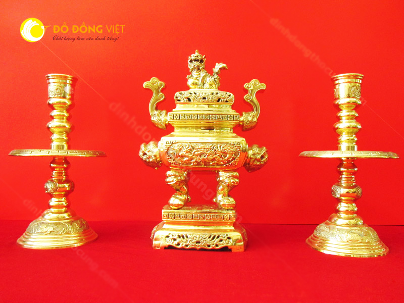 Bộ lư đồng, đỉnh đồng thờ cúng Vĩnh tiến phù hợp cho bàn thờ có bề ngang 1m đến 1m27, bề sâu 30 đến 40m ( ước chừng tham khảo) Hiện nay tùy thuộc vào gia chủ sử dụng đỉnh lư vuông hay đỉnh lư tròn, thường thấy thì miền nam xài vuông , miền Bắc xài tròn. Xuất xứ: Vĩnh Tiến Chất liệu: đồng vàng, Giá bán lẻ tại Đồ đồng Việt, gái tại xưởng sản xuất.