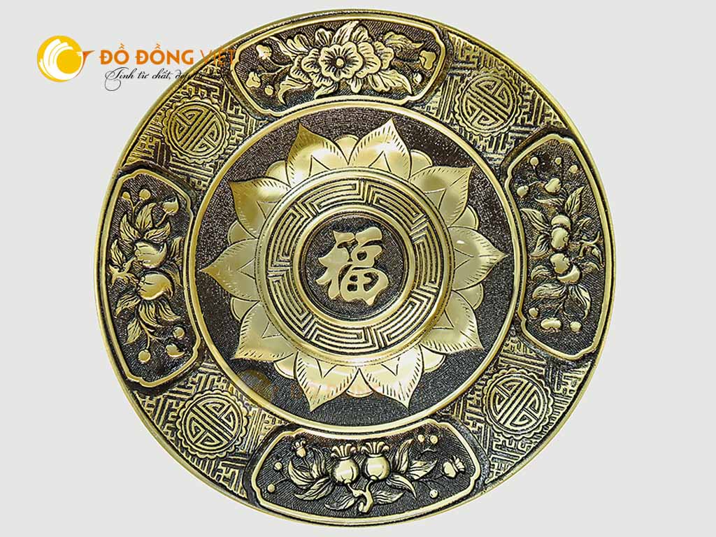 Mâm bồng bằng đồng đỏ hoa sen chữ Phúc
