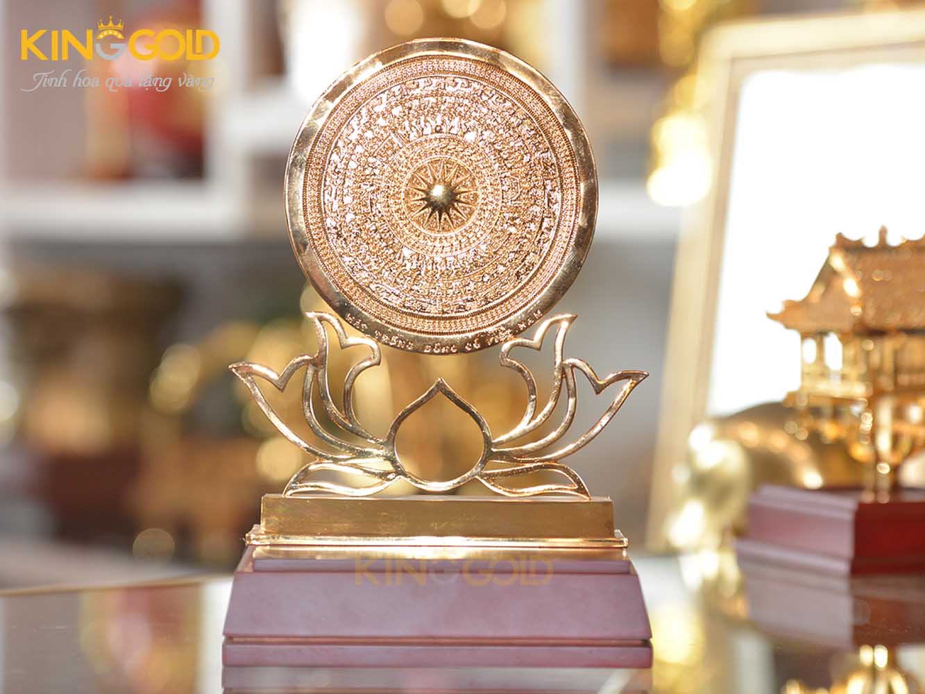 Mặt trống đồng đế hoa sen làm quà tặng đối tác nước ngoài