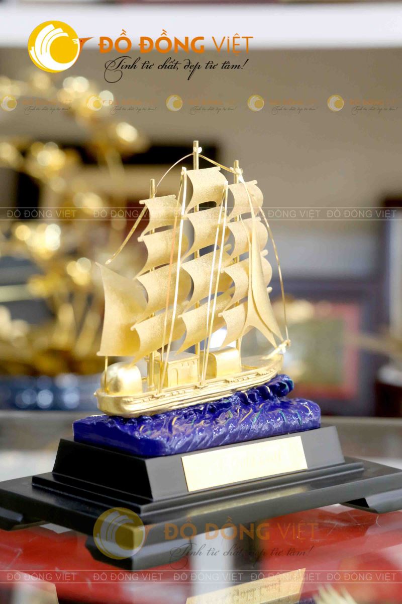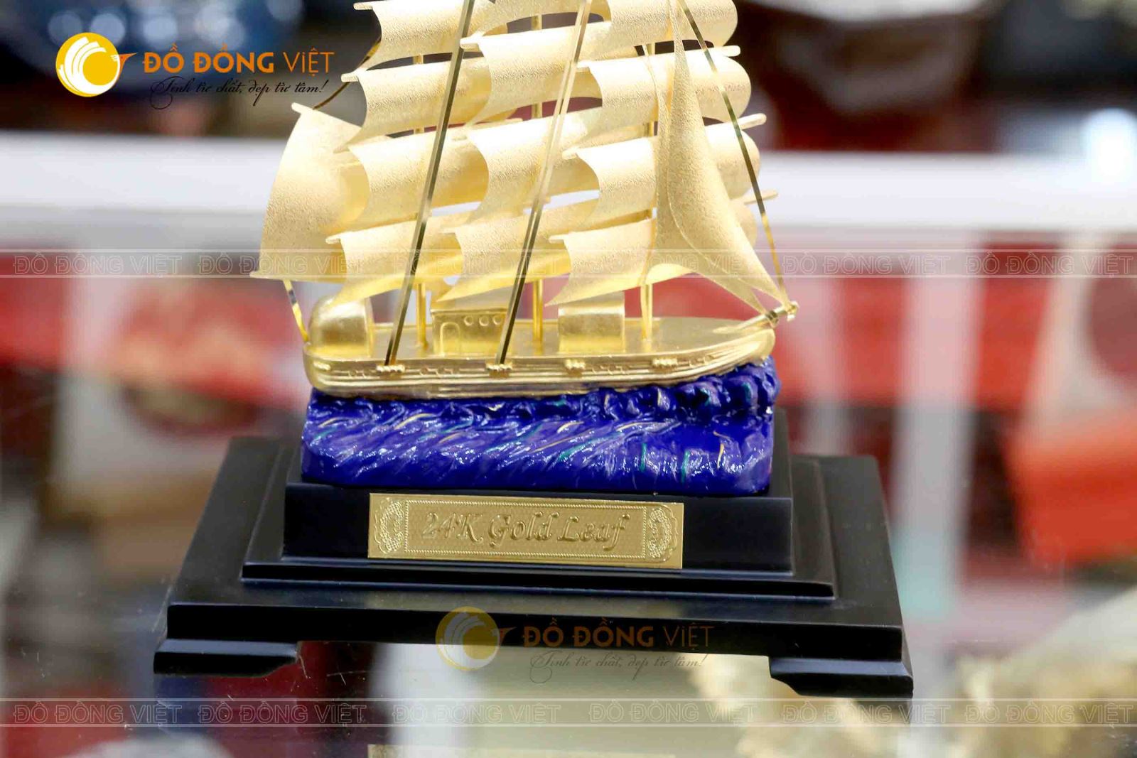 Cánh buồm được chế tác hơi cong thể hiện con thuyền đang căng gió lướt về phía trước. Sau khi chế tác các bộ phận và hàn ghép nối các chi tiết lại với nhau. Lớp Mạ vàng 24k bám chắc, màu sắc nổi bật và gần như không phai màu. Các nghệ nhân tiếp tục phủ ngoài lớp sơn trong suốt, tăng độ sáng bóng và bảo quản bề mặt khỏi các tác động của môi trường. Tuổi thọ của sản phẩm có thể dài lâu, màu sắc cả chục năm không sợ xỉn hay xuống màu.