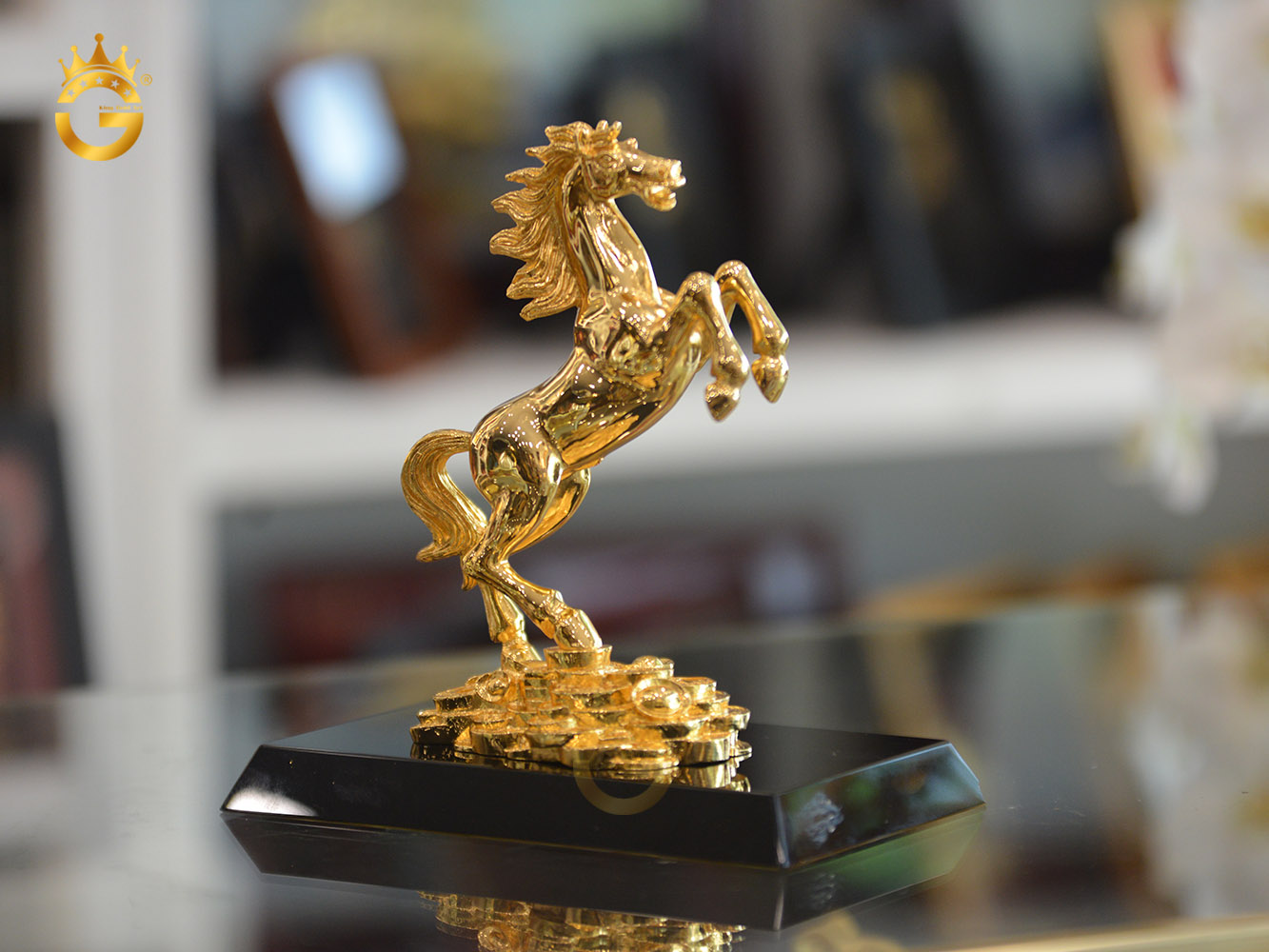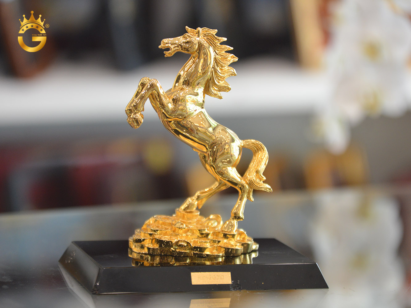 Ngựa dát vàng 999,9 được coi là chiến mã, tượng trưng cho thần tốc, sự dũng mãnh và lòng kiên hãnh. Ngựa là con vật thông minh, khôn ngoan, sống gần người và rất trung thành. Ngựa phi nước đại hay còn gọi là “Lộc Mã”. Hình ảnh này biểu trưng cho sự phát đạt, thịnh vượng trong công việc kinh doanh đồng thời thể hiện sự nhạy bén và thăng tiến trong tiền tài, danh vọng.