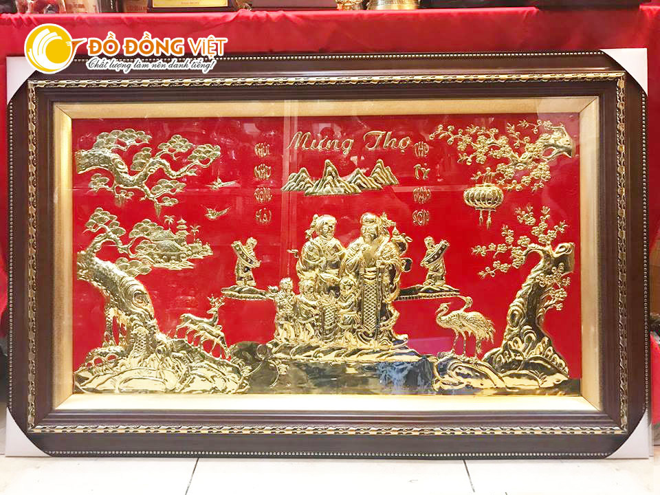 Tranh mừng thọ mạ vàng có 3 bản, đó là tranh mừng thọ cụ ông, tranh mừng thọ cụ bà và mừng thọ song cụ. Tranh có thể viết nội dung tùy ý theo yêu cầu. Đồ đồng Việt nhận làm tranh mừng thọ, nội dung chúc thọ theo yêu cầu của quý khách. Mỗi dịp đầu xuân năm mới, Mừng Thọ được coi là một trong những truyền thống tốt đẹp của người Việt Nam, thể hiện đạo lý “uống nước nhớ nguồn”.