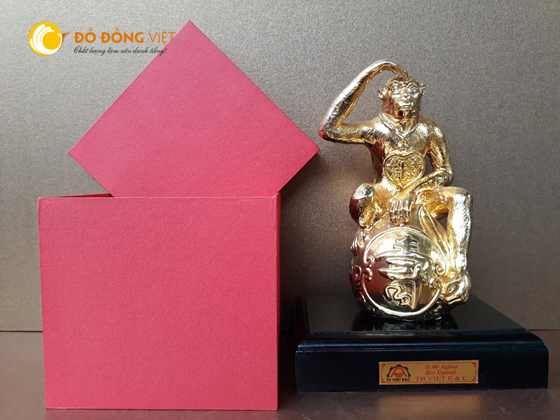 Quà tặng sếp tuổi Thân- tượng khỉ bằng đồng mạ vàng 24k