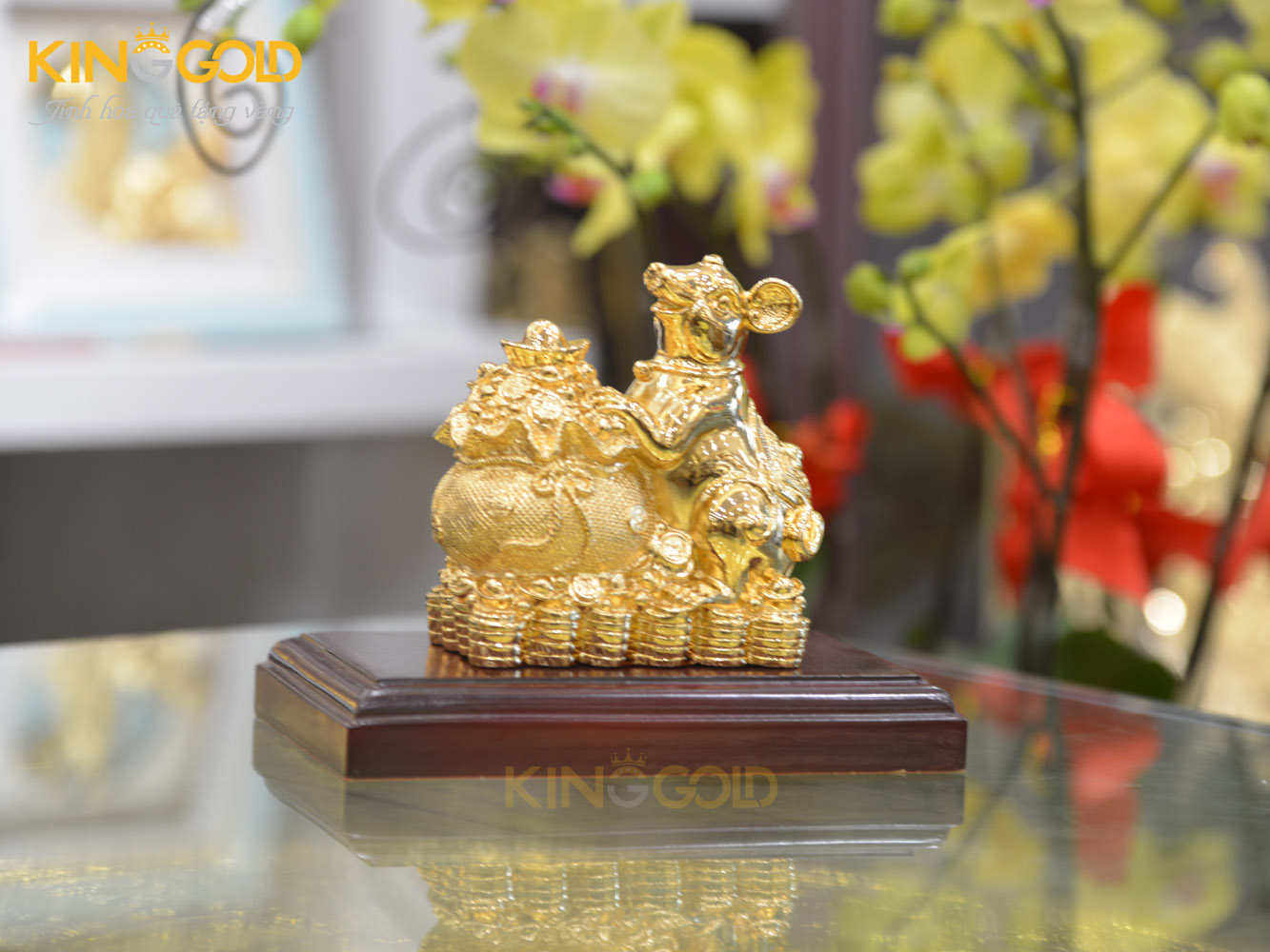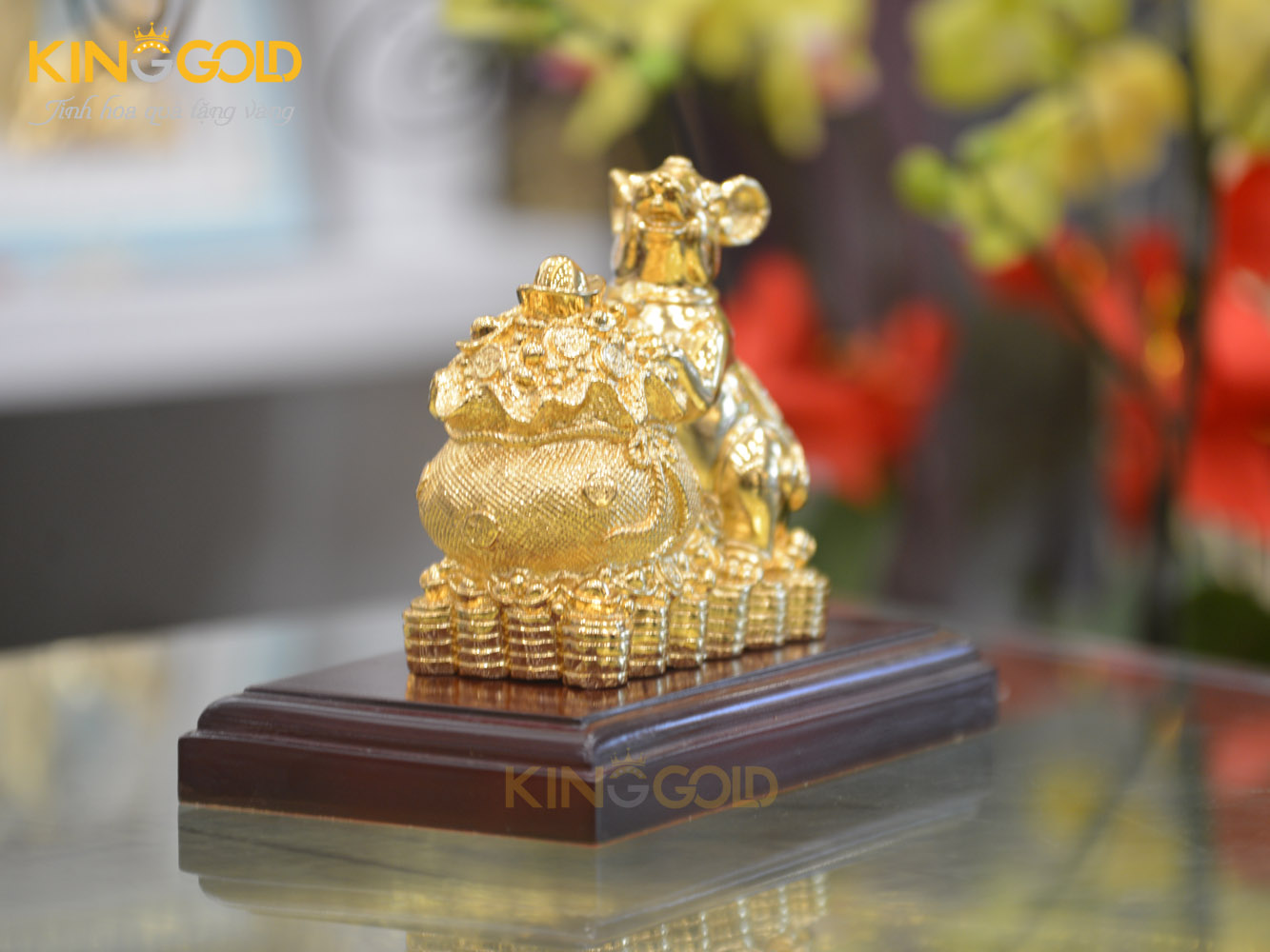Quà tặng sếp tuổi Tý- tượng chuột ôm bao tiền mạ vàng