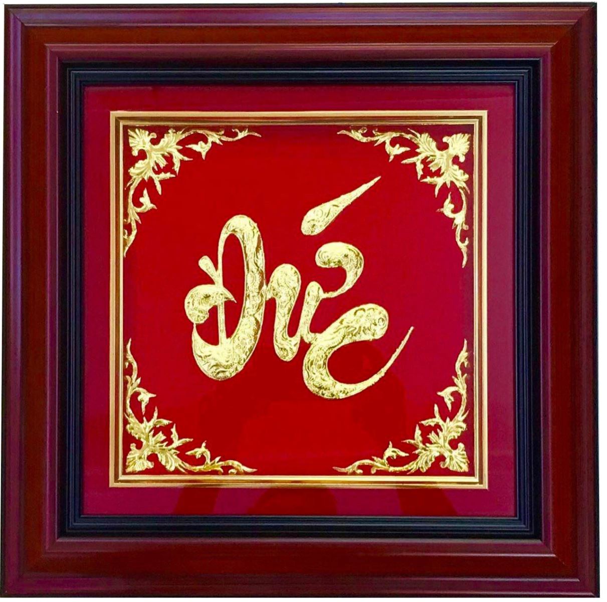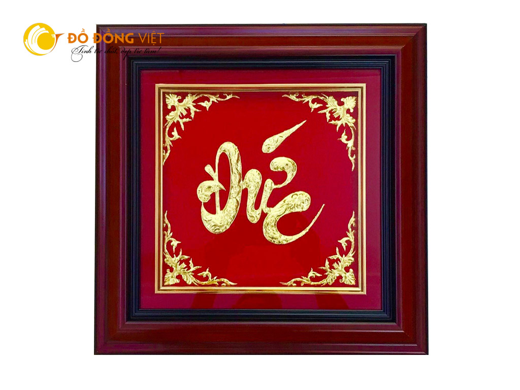 Quà tặng tranh chữ đồng, tranh chữ đức thư pháp mạ vàng