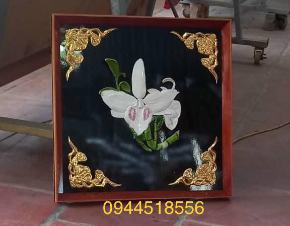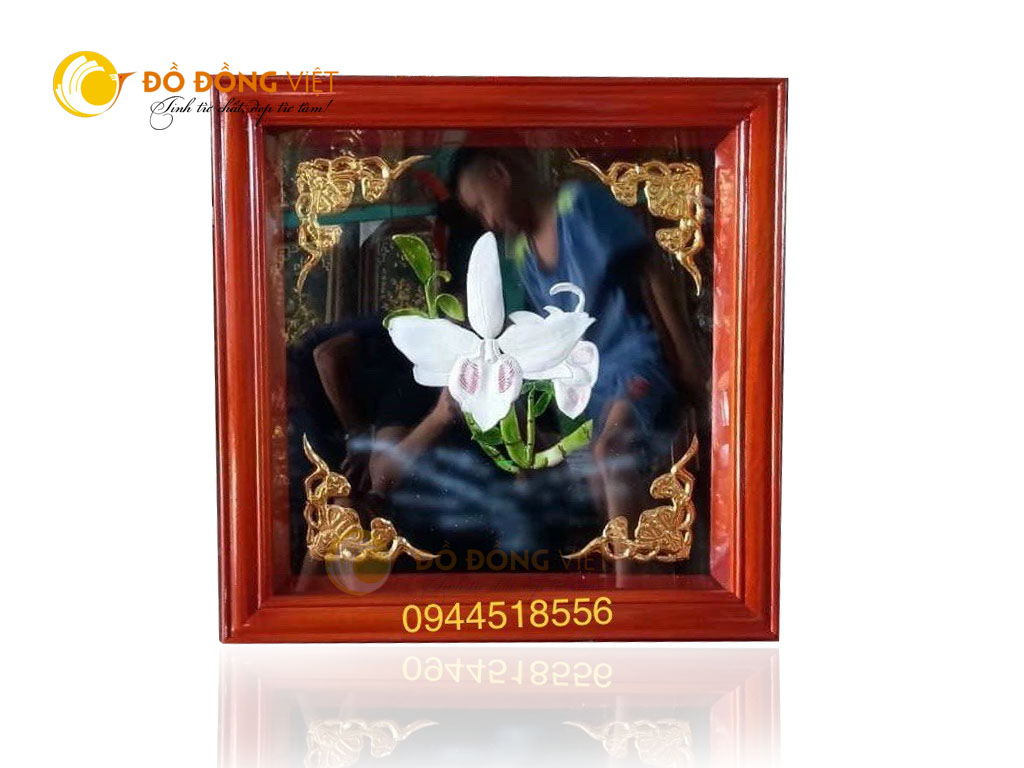 Từng đường nét, chi tiết đều được chạm khắc chính xác, dứt khoát, thành công khắc họa hoa lan sang trọng, sống động như thật. Tranh được thực hiện trên nền tối màu cùng với họa tiết trang trí 4 góc càng làm nổi bật lên vẻ sang trọng của tranh.
