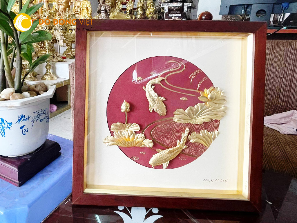 Tranh cá chép hoa sen dát vàng 24k- quà tặng tranh vàng cao cấp