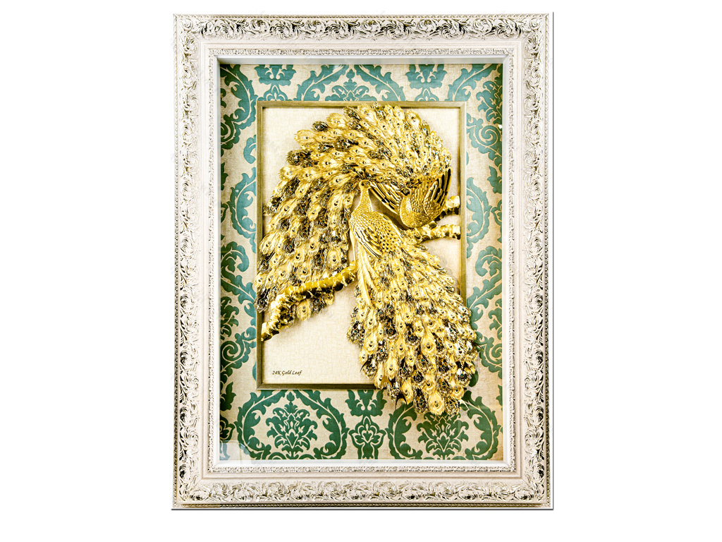 Tranh chim công mạ vàng