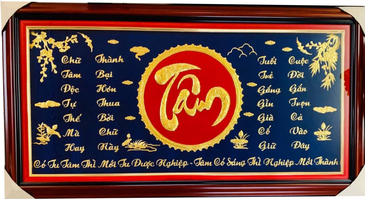 Tranh chữ đồng mạ vàng, tranh chữ tâm thư pháp mạ vàng