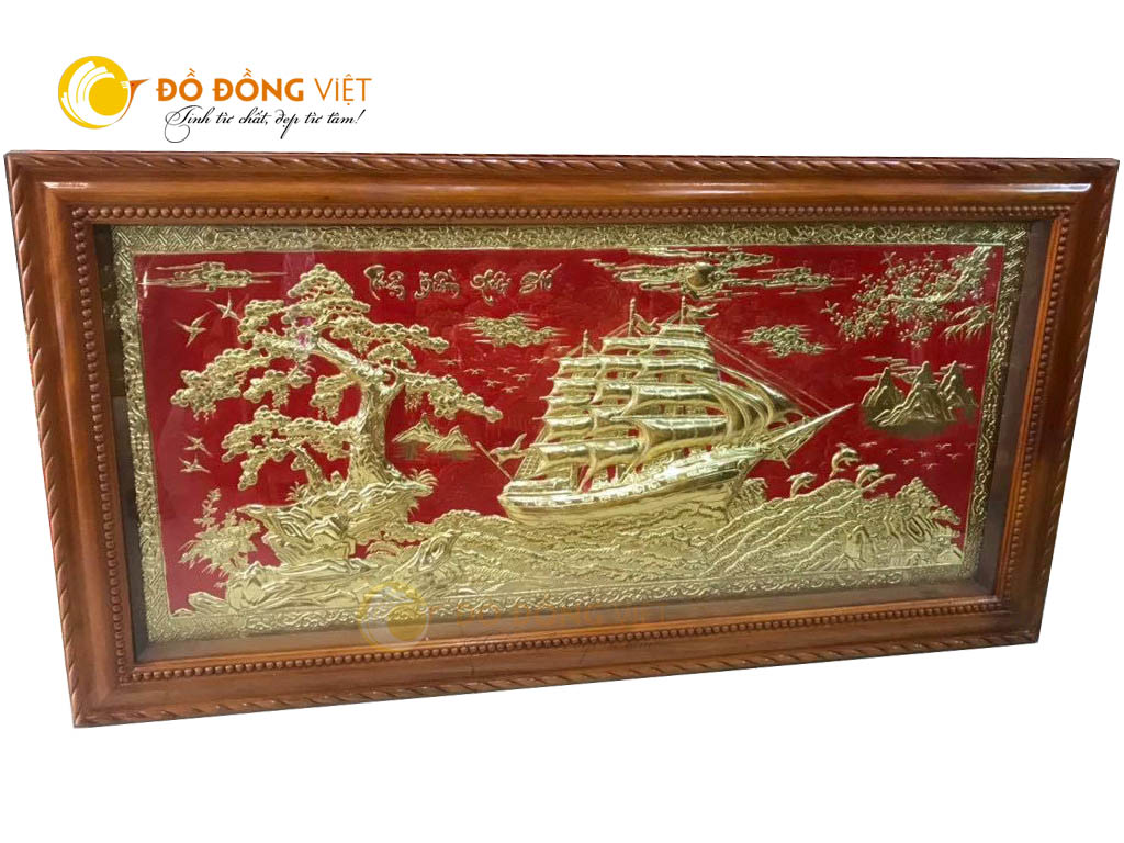 Tranh đồng thuận buồm xuôi gió nền đỏ mạ vàng đẹp tinh xảo