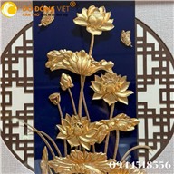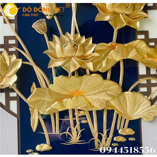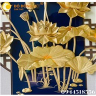 TRANH HOA SEN NỀN XANH DÁT VÀNG - THANH KHIẾT, THỊNH VƯỢNG, BÌNH AN