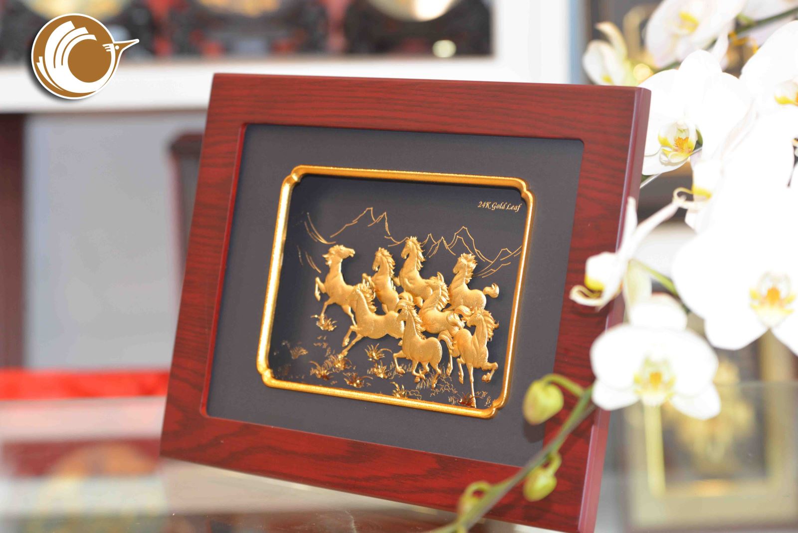 Tranh mã đáo thành công dát vàng 24k