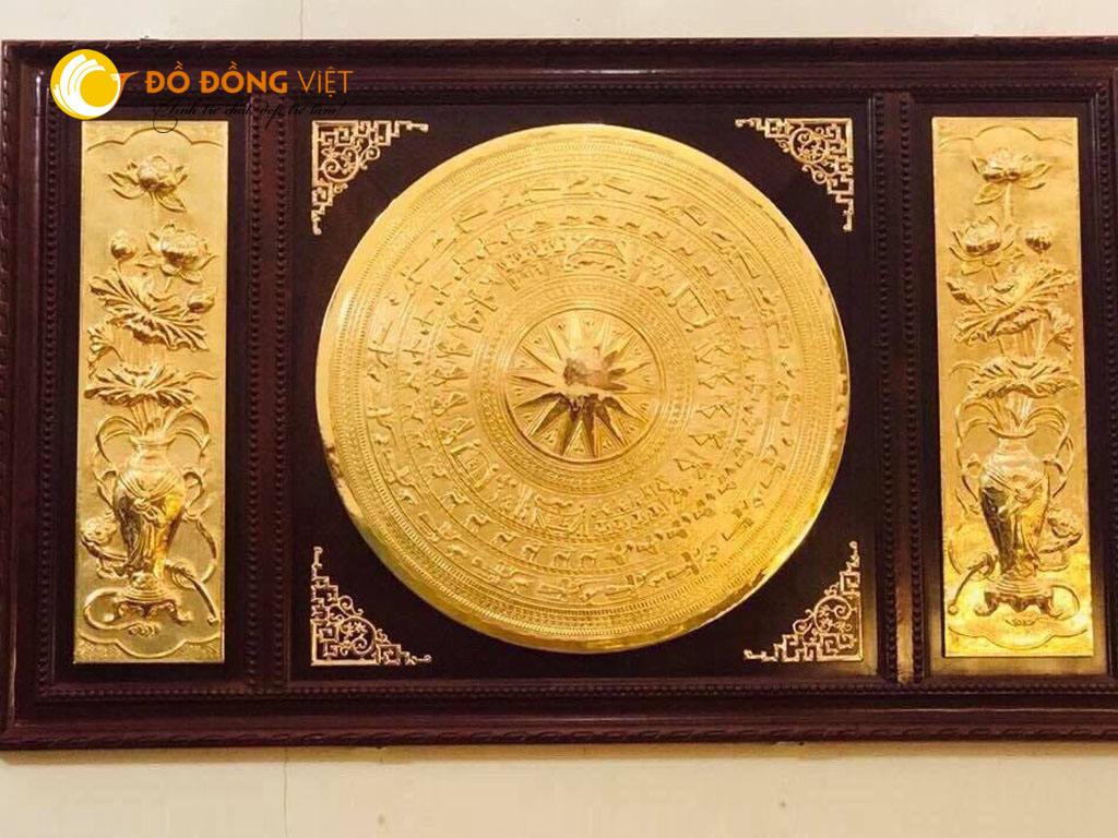 Tranh mặt trống đồng gò nổi thủ công mạ vàng đẹp tinh xảo