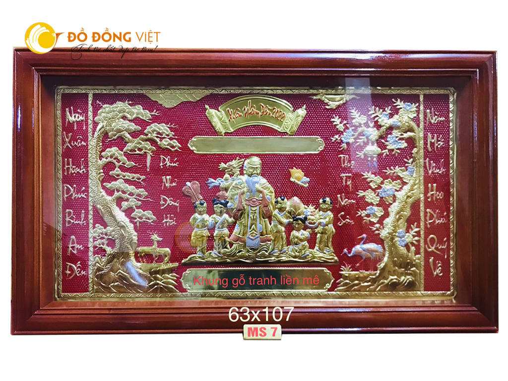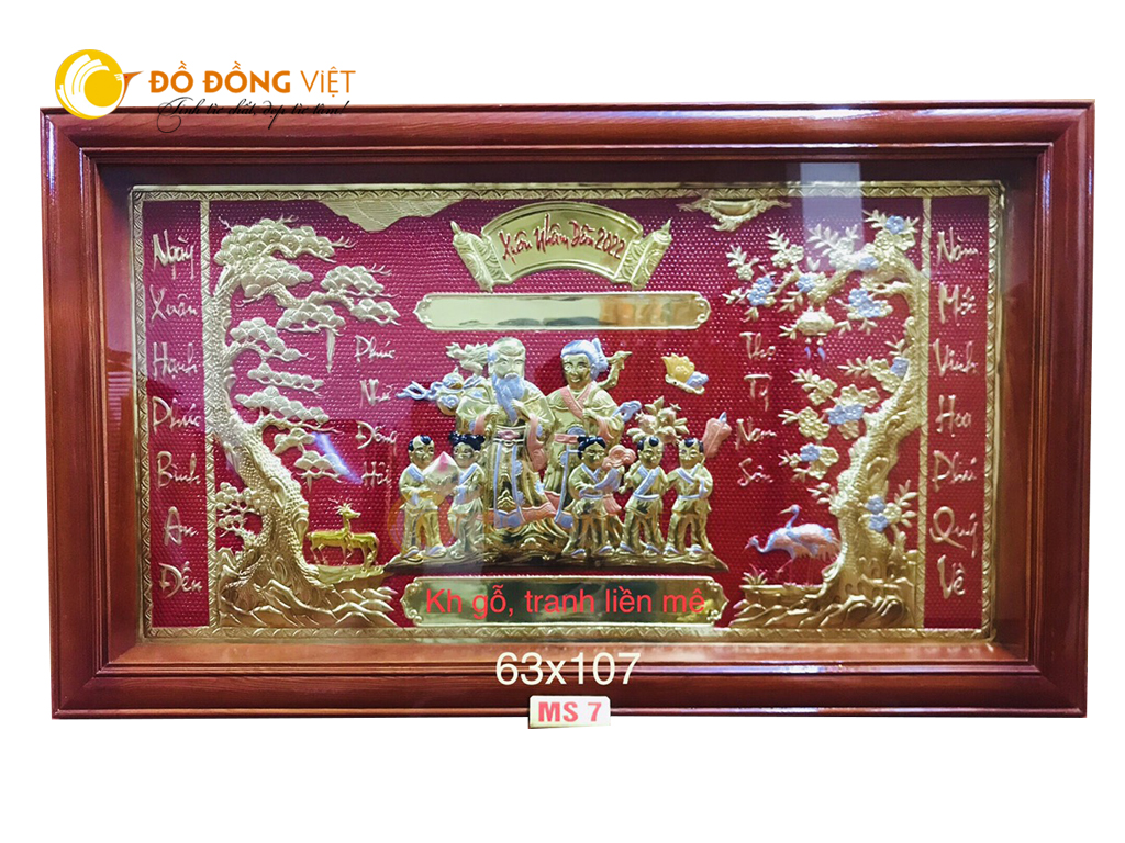 Đồ đồng Việt ra mắt mẫu sản phẩm tranh mừng thọ đẹp nhất, rẻ nhất. Kích thước 63X107cm chất liệu khung gỗ, chi tiết đồng liền mê đẹp tinh xảo. Mẫu tranh mừng thọ cụ bà là mẫu tranh mừng thọ đẹp nhất. Giá bán rẻ tại xưởng sản xuất.