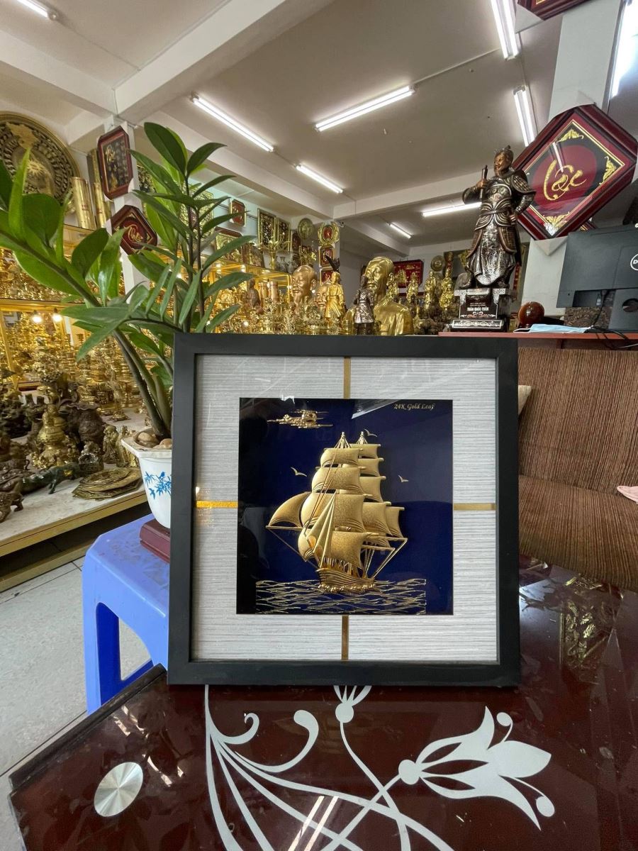 Tranh thuyền buồm bằng vàng lá 24k đẹp tinh xảo từng chi tiết
