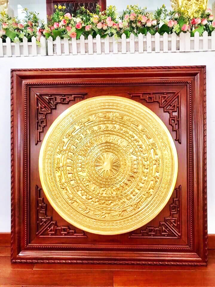 Tranh trống đồng Đông Sơn chất liệu bằng đồng vàng, kỹ thuất làm ăn mòn đẹp tinh xảo. Tranh trống đồng mẫu có sẵn tại cửa hàng với kích thước: Mặt trống 90cm cả khung là 150x150, mặt trống 50cm cả khung là 80x80, mặt trống 60cm cả khung là 1mx1m. Quý khách hàng có nhu cầu mua loại tranh trống đồng kích thước theo yêu cầu, liên hệ với chúng tôi để được tư vấn chi tiết nhất cũng như chính sách giảm giá cho khách hàng.