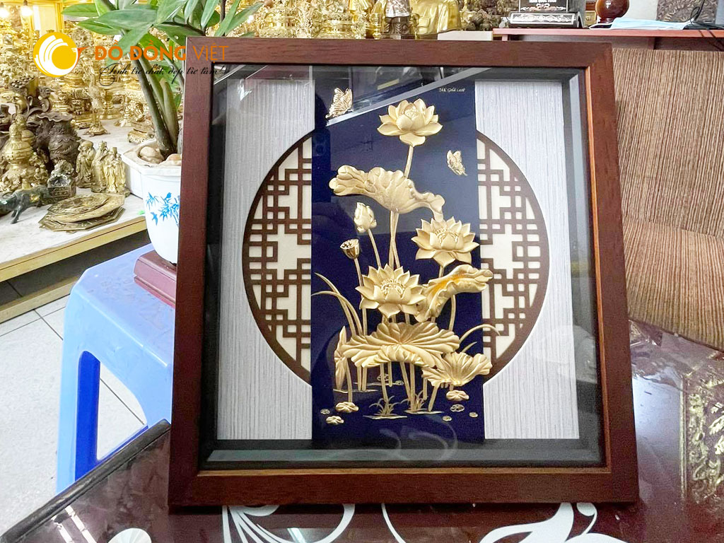 Tranh vàng 24k hoa sen đẹp tinh xảo