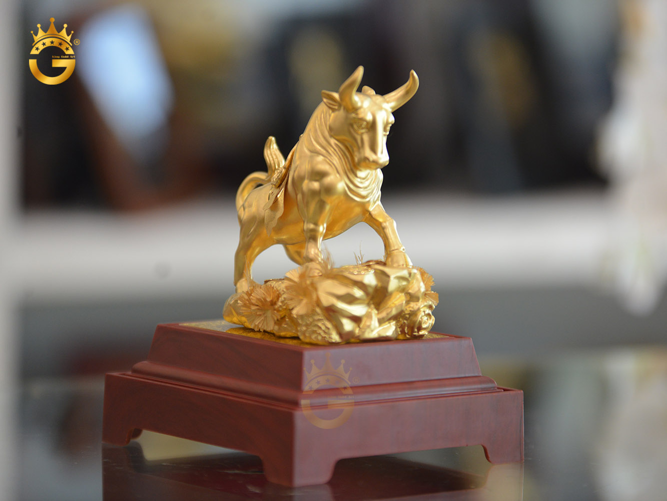 Tượng bò tót bằng đồng mạ vàng đẹp tinh xảo
