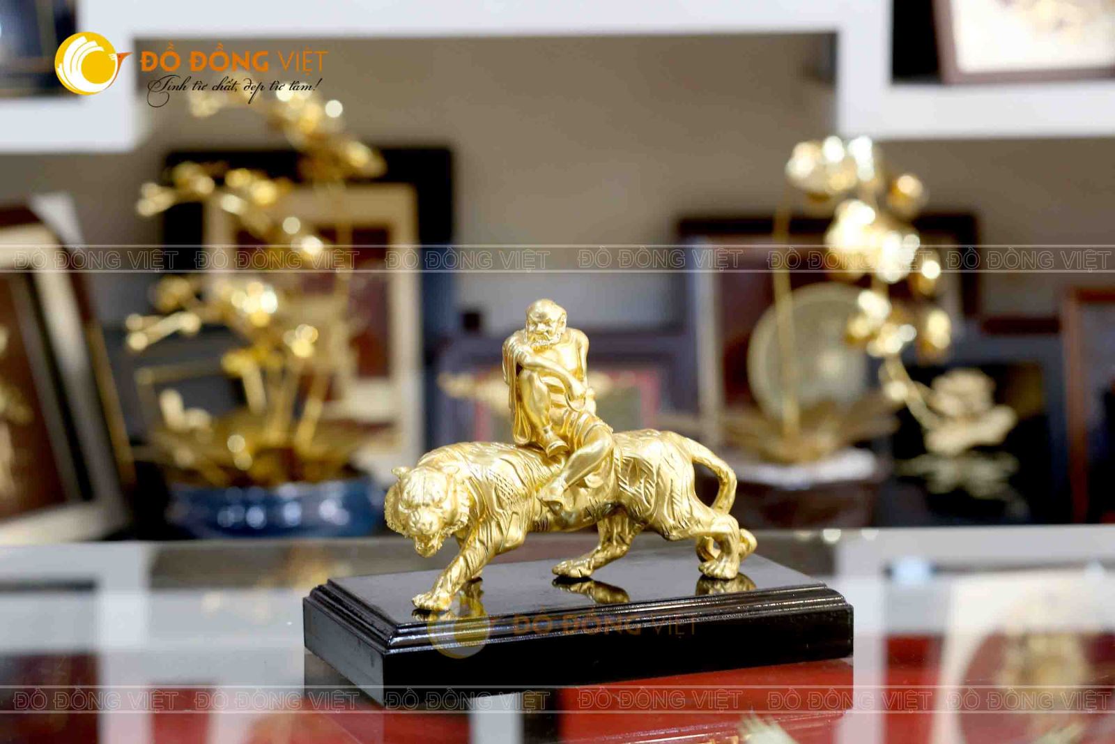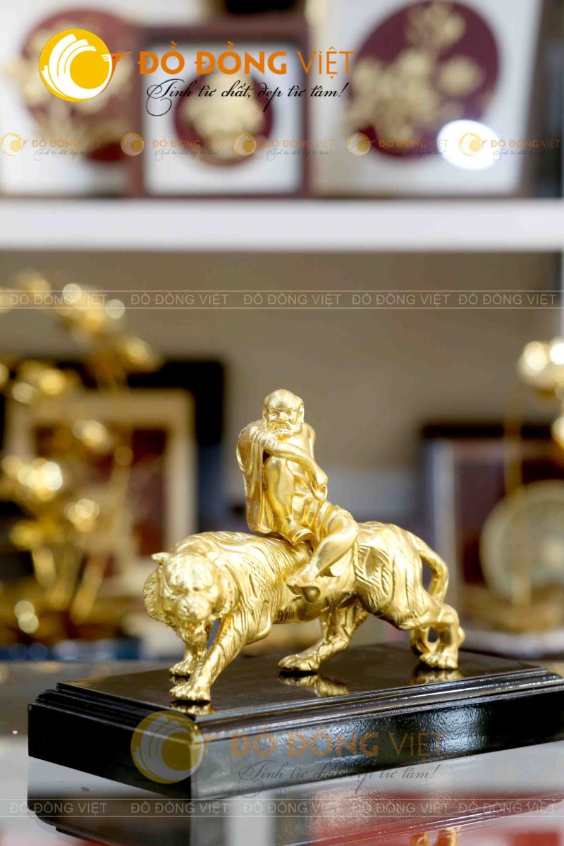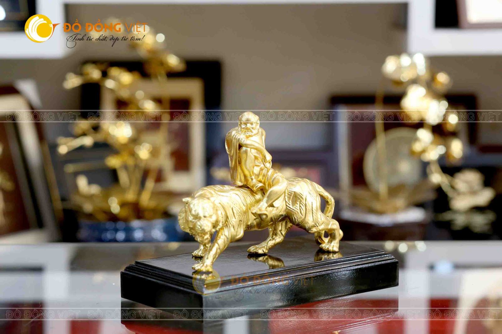 Tượng đồng La Hán phục hổ mạ vàng 24k
