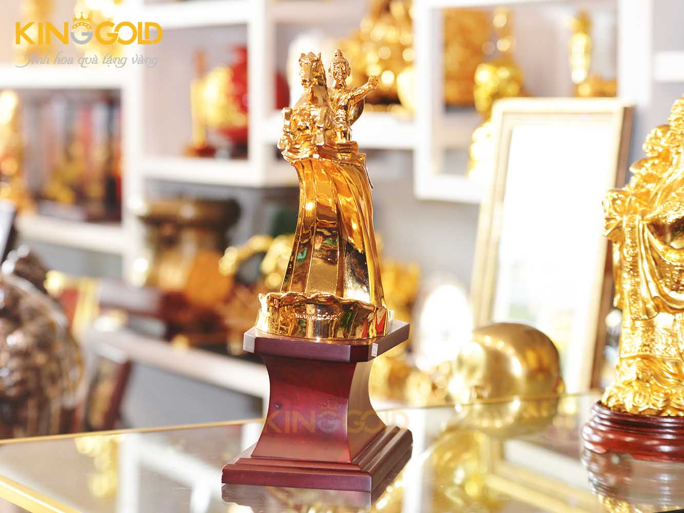 Tượng Thánh Gióng mạ vàng sẽ là món quà tặng cao cấp vô cùng ý nghĩa. Để tặng cho sếp, bạn bè, du khách nước ngoài, người thân trong gia đình. Làm quà tặng cho đội chiến thắng trong các trò chơi của lễ hội Phù Đổng. Một bức tượng Thánh Gióng mạ vàng được trưng bày trong tủ kính tạo nên sự sang trọng đồng thể hiện tình yêu quê hương đất nước, cội nguồn dân tộc…
