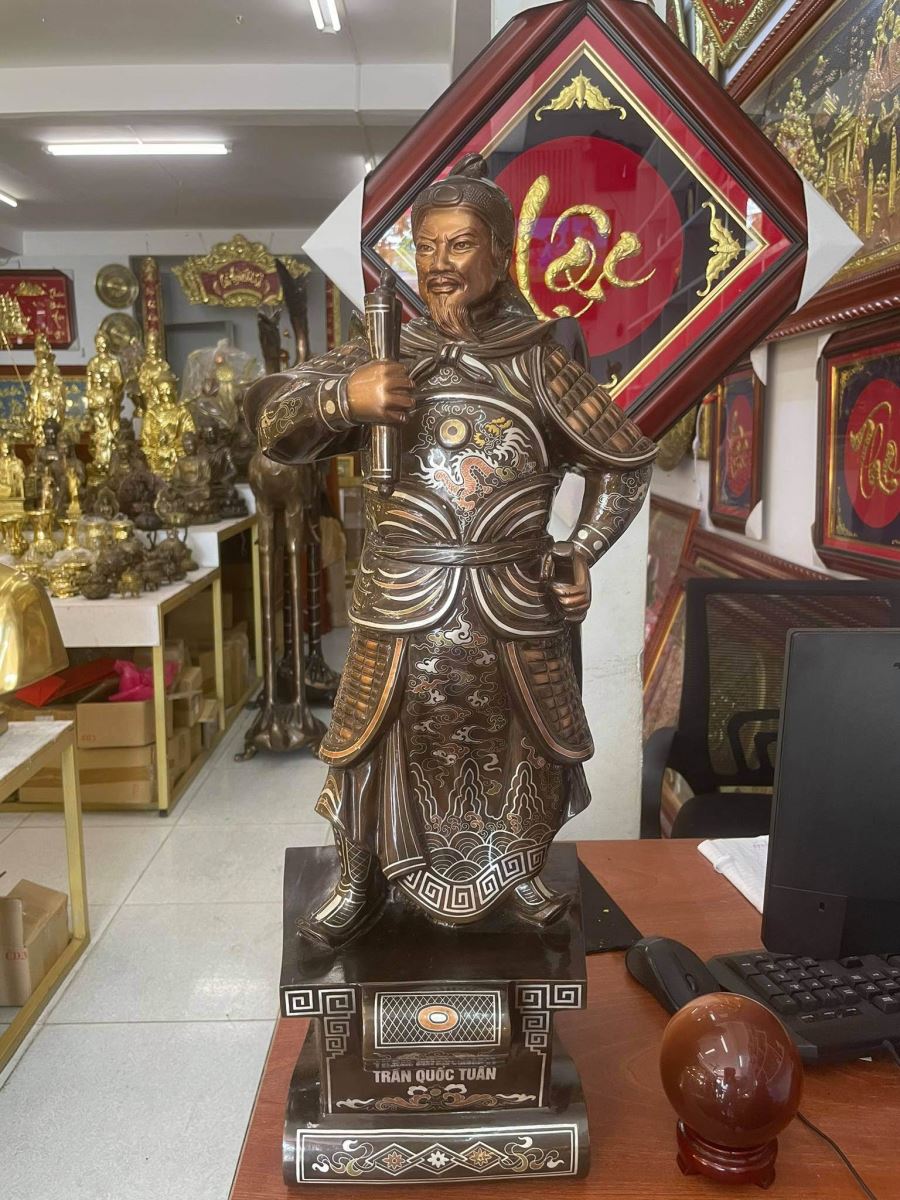 Tượng đồng Trần Quốc Tuấn khảm ngũ sắc đẹp tinh xảo